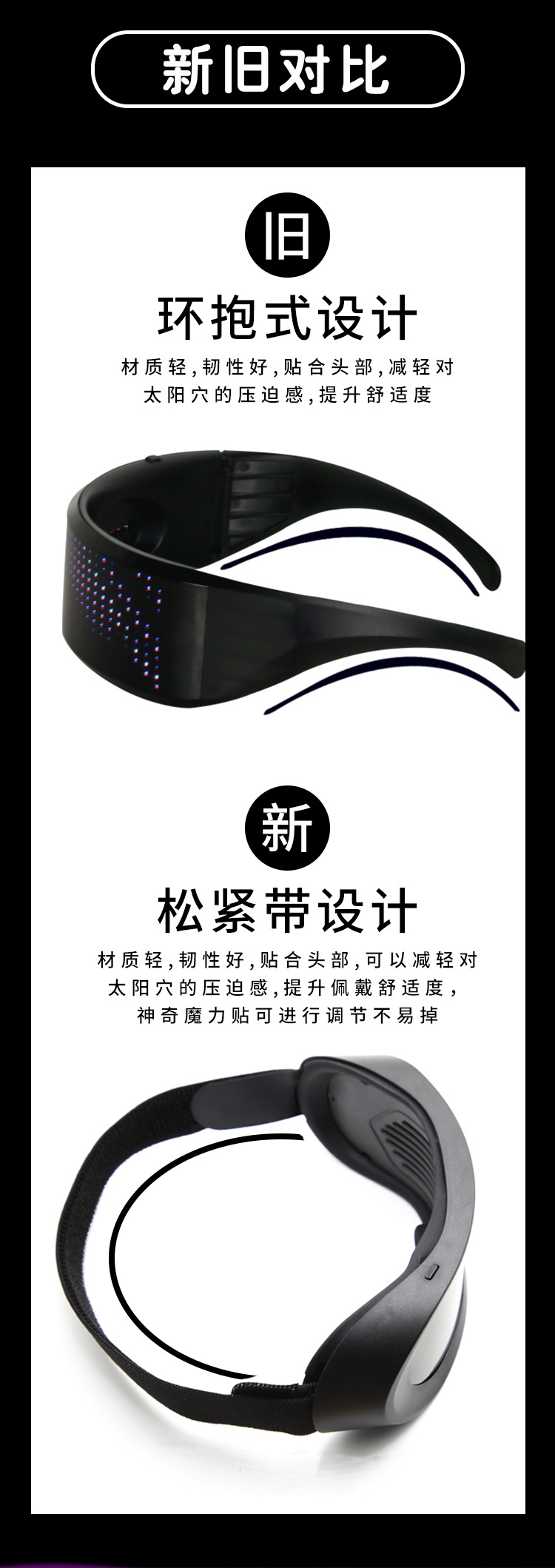 跨境新款全彩LED动态眼镜百叶窗APP蓝牙发光眼镜生日派对助威道具 投诉