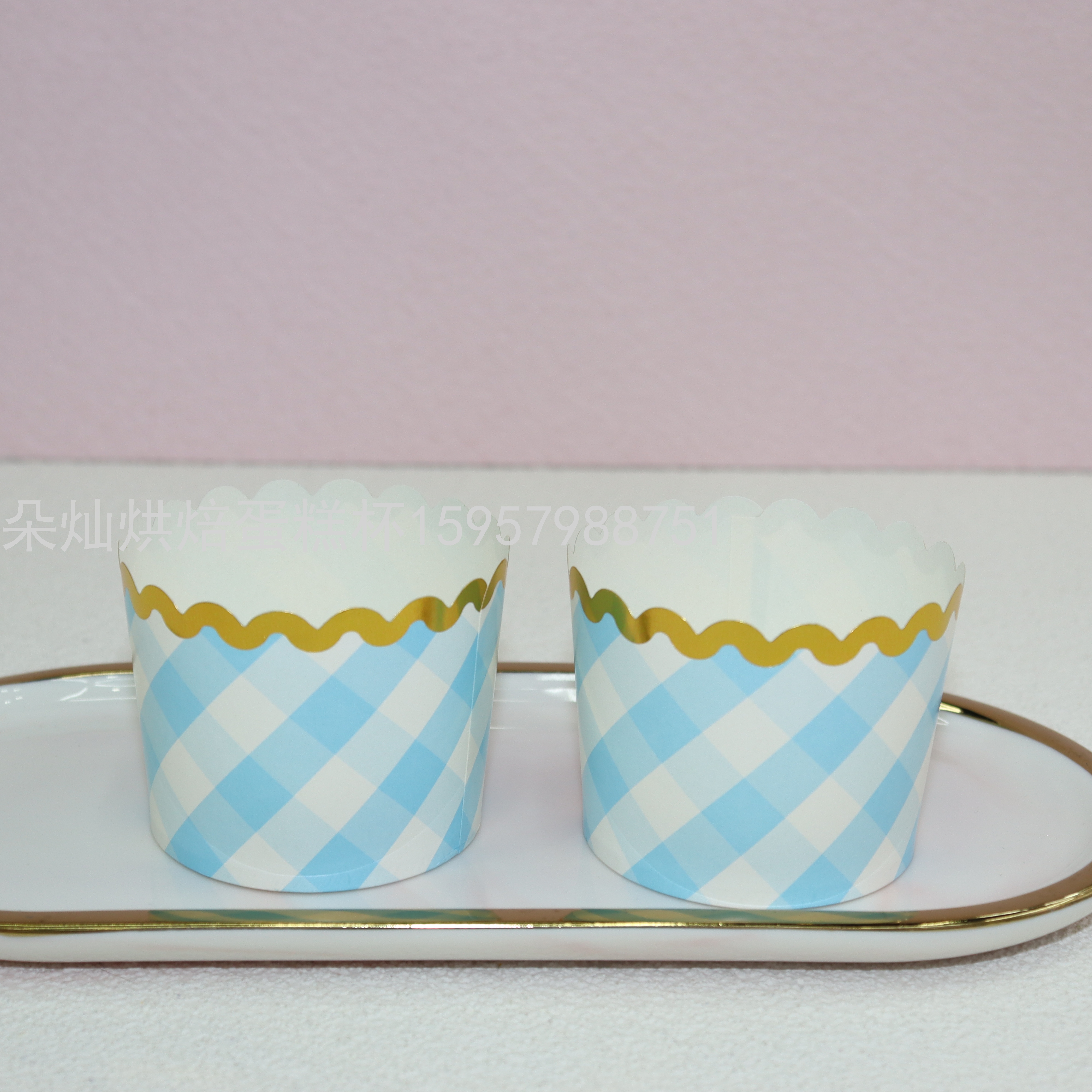 产品名称:烫金蓝色格纹款机制蛋糕杯6*5.5cm  50个/条