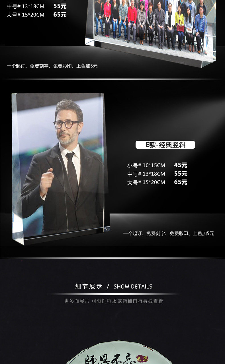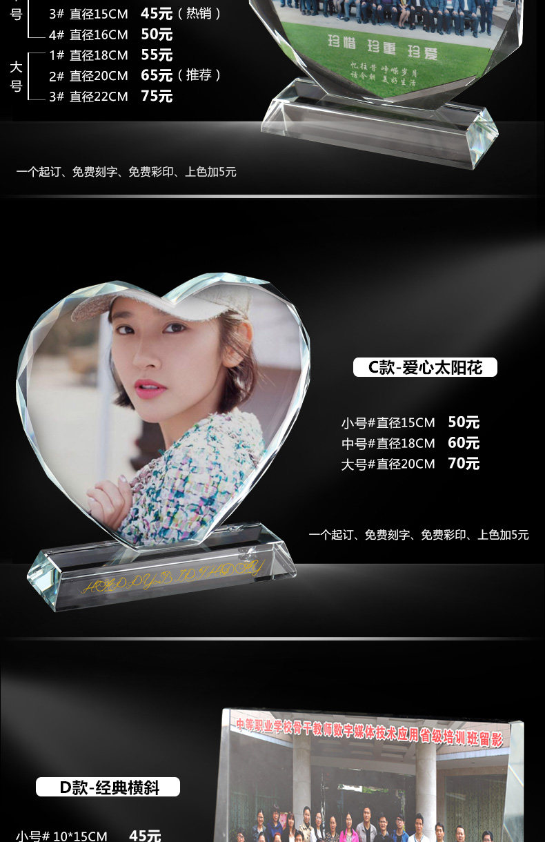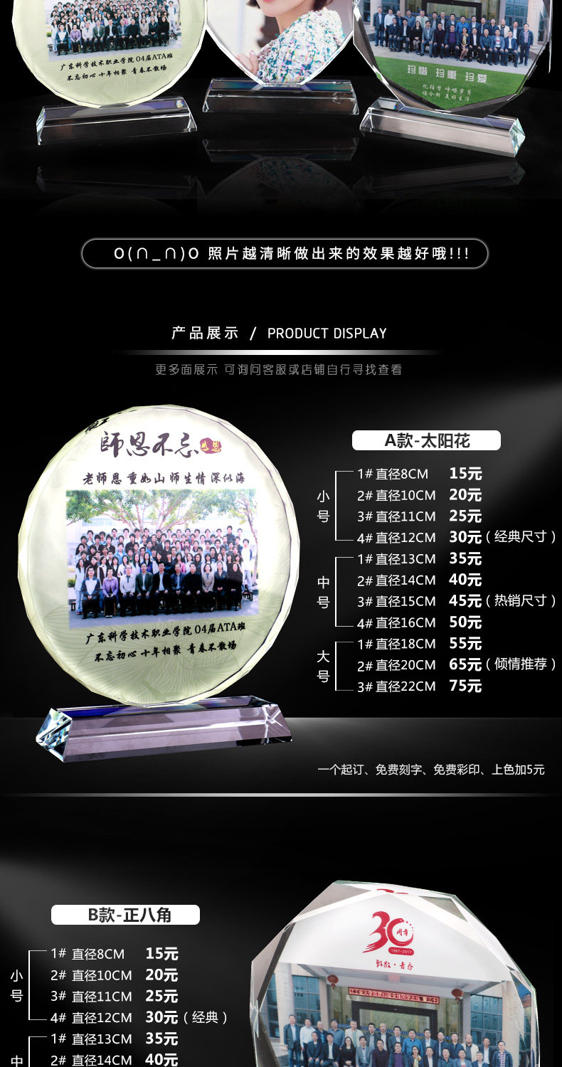 创意礼品水晶摆件定制员工颁奖同学聚会战友退伍照片定做刻字奖牌 投诉