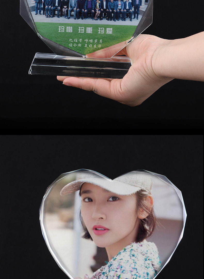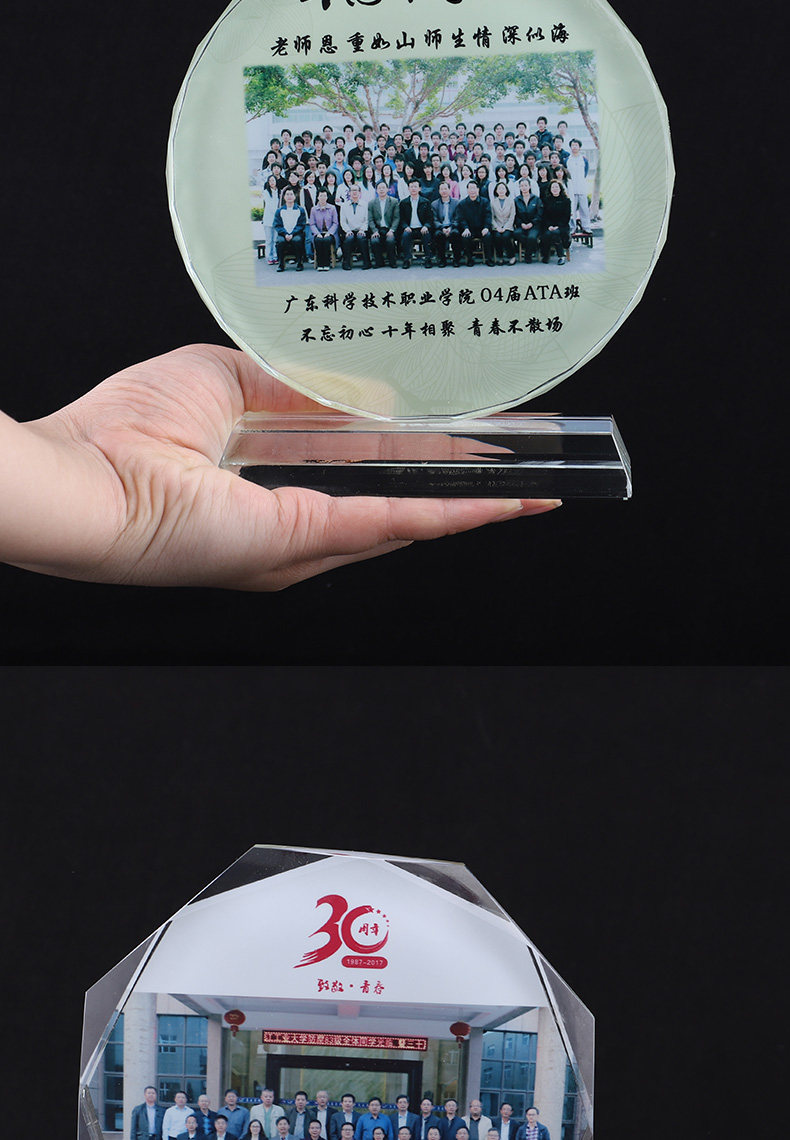 创意礼品水晶摆件定制员工颁奖同学聚会战友退伍照片定做刻字奖牌