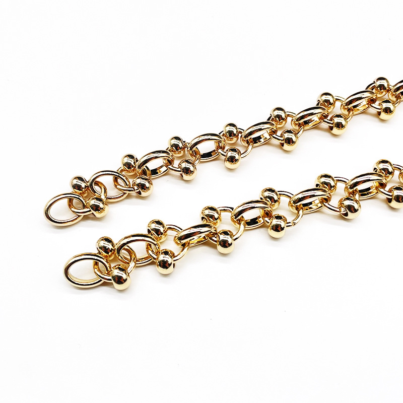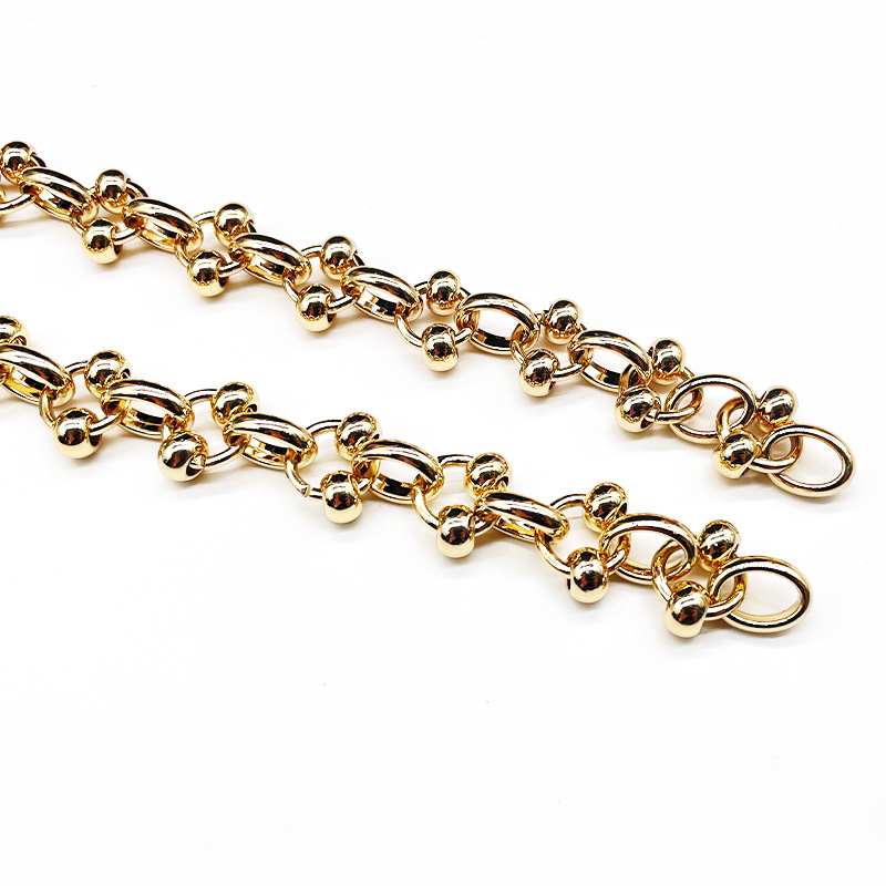 • 我司主要生产产品有两大类。专业生产五金链条,手袋链,蛇链,饰品链,万字链,珠链,NK链,灯饰链等。专业生产设计制造锌合金压铸,奖牌,三档扣,弹簧圈,钩扣,锁头,装饰配件,吊钟,皮具合金,五金配件等