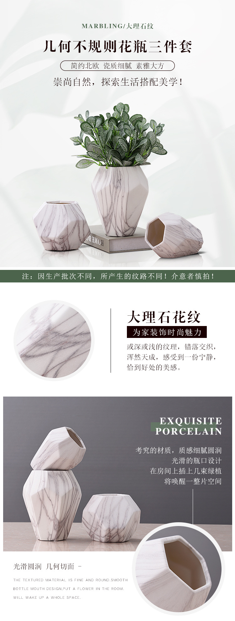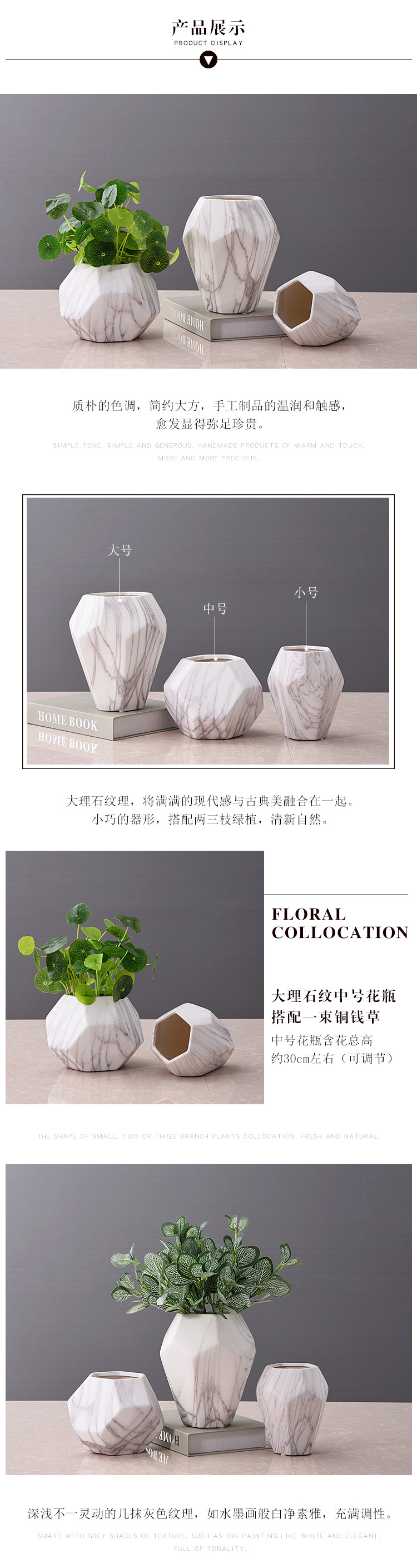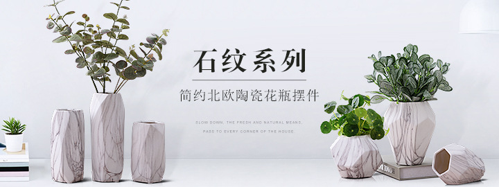 创意几何花器大理石纹陶瓷花瓶电视柜台面花插样板间装饰品批发 English | 投诉