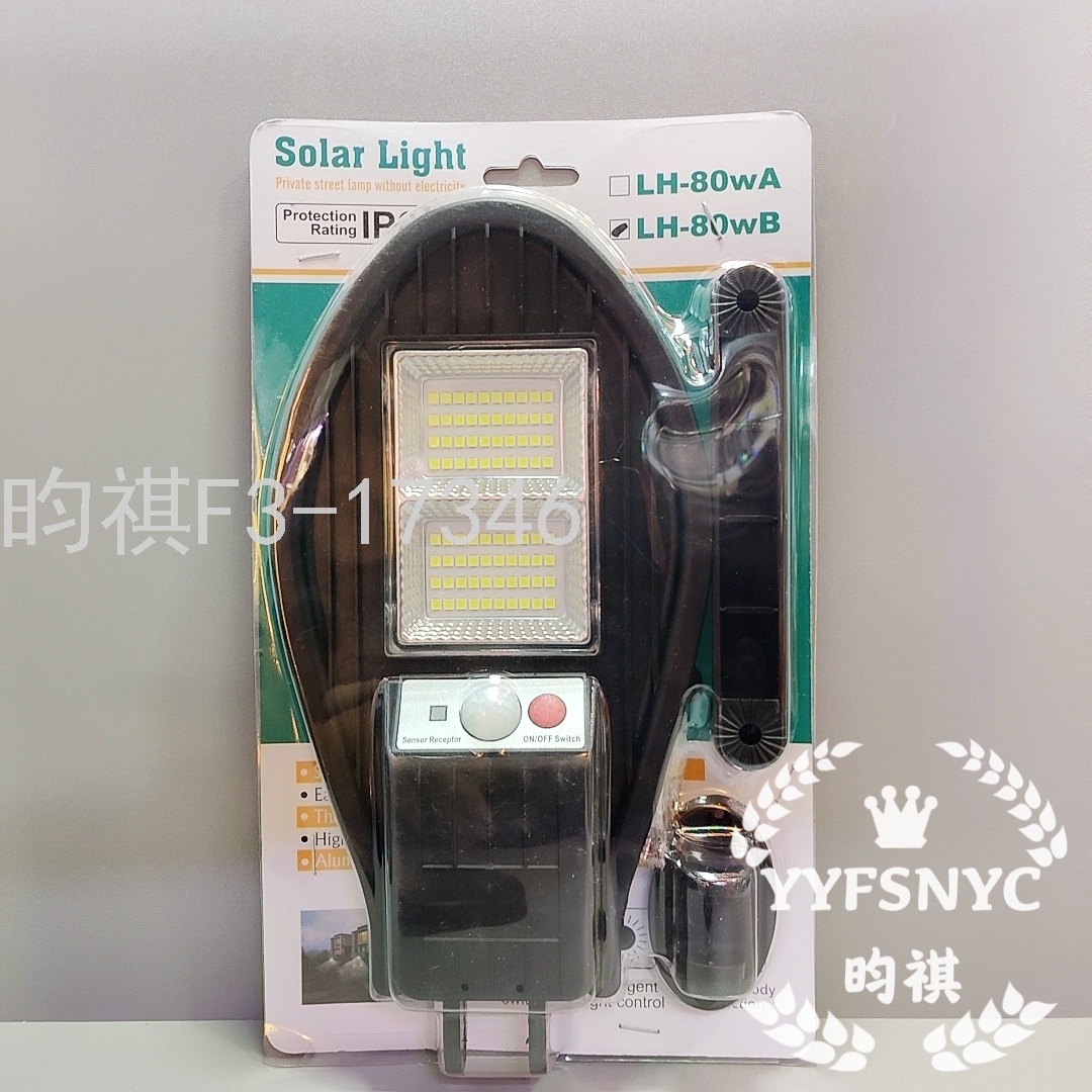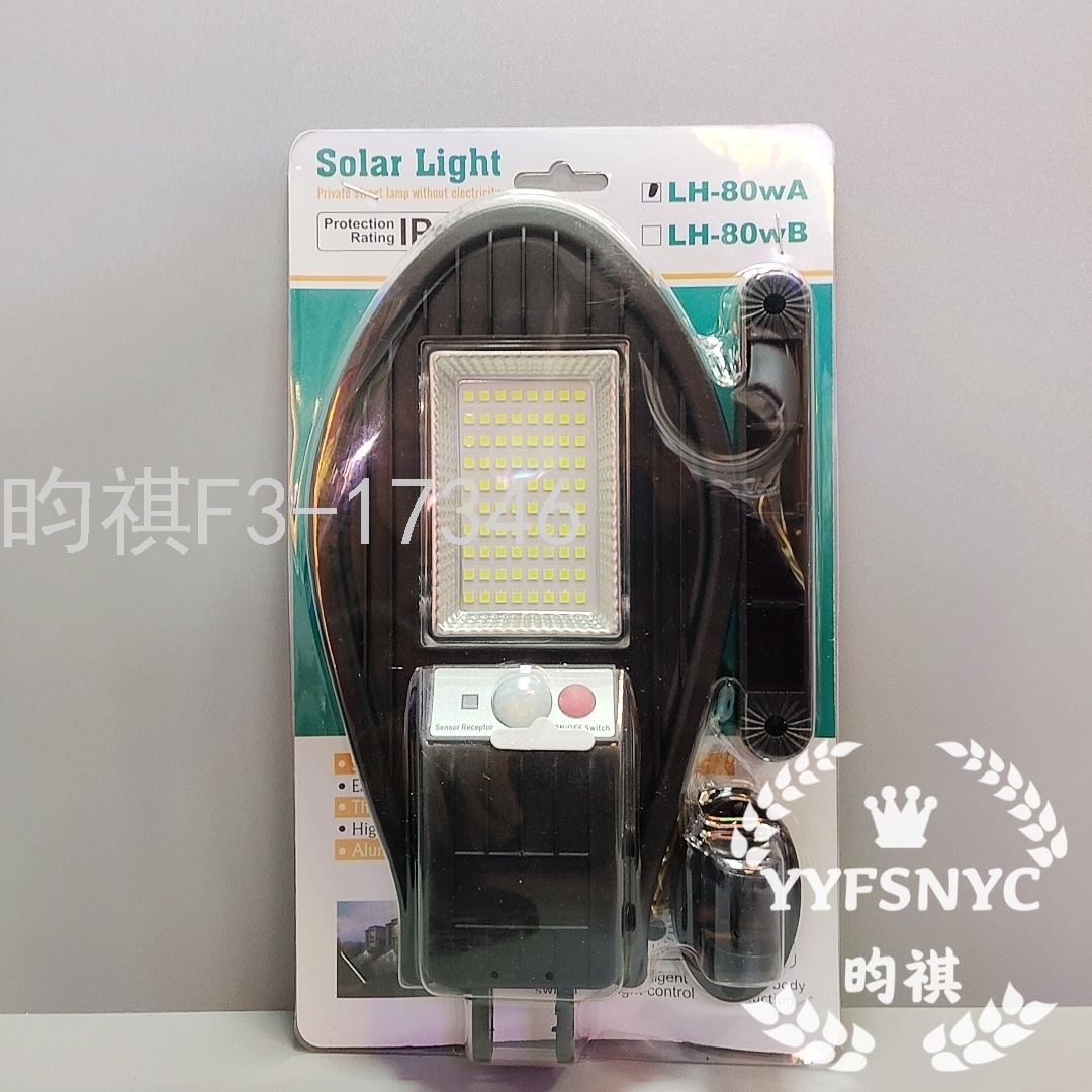 产品特点:太阳能充电,0电费,低耗能。阴雨天照常工作,智能光控,白天自动充电,晚上自动亮灯。人来灯亮,人走灯灭,保证全年正常使用。高品质灯珠,持久耐用,高亮度。一体化安装轻松便携。照射面积大,范围广。节能环保,带无线遥控。