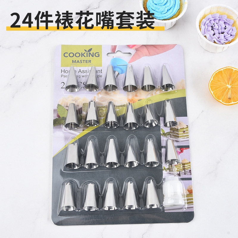 24件不锈钢裱花嘴套装带转换器 蛋糕裱花挤曲奇烘焙工具 English | 投诉