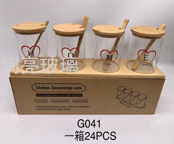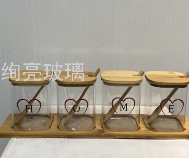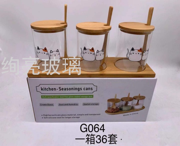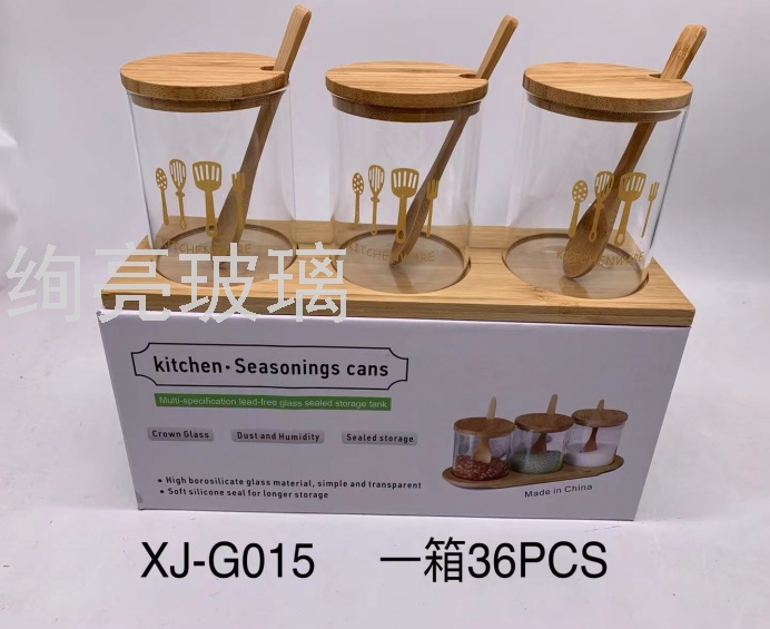 竹盖玻璃调味罐三件套带勺子 油瓶调味瓶储物罐圆形防潮罐 English | 投诉