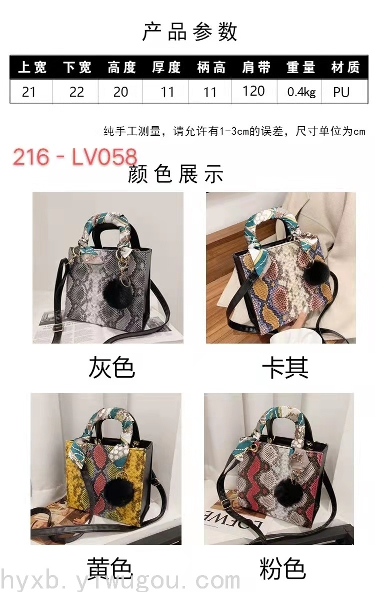 女包新款包休闲包单肩包PU包女式手提包蛇皮纹时尚包