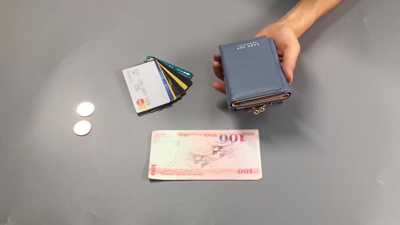 女生时尚潮流纯色竖款三折零钱袋多卡位大容量锁扣撞色PU钱包 English | 投诉