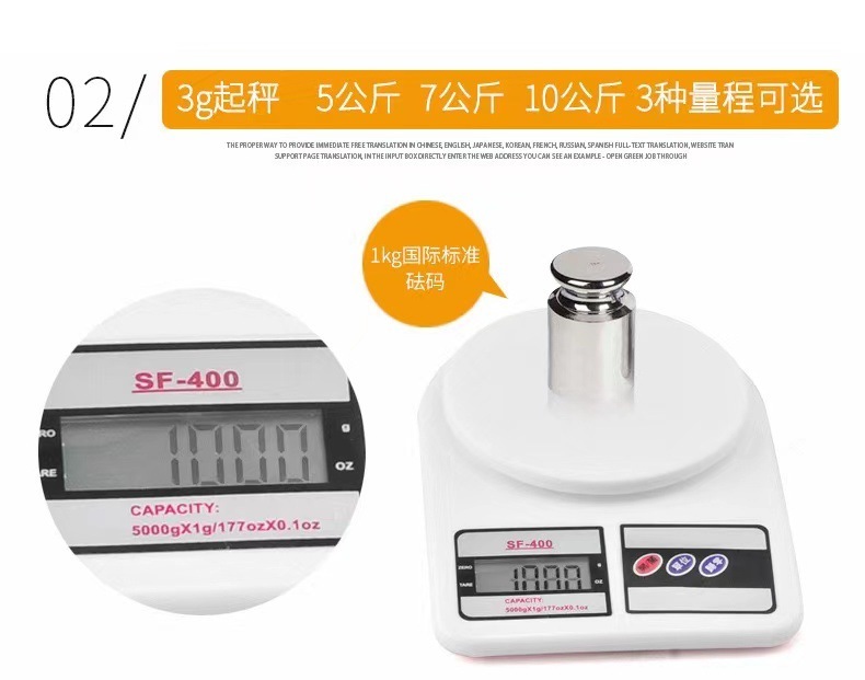 【量程和精度值】3kg/1g,5kg/1g,7kg/1g,10kg/1g