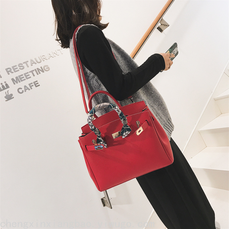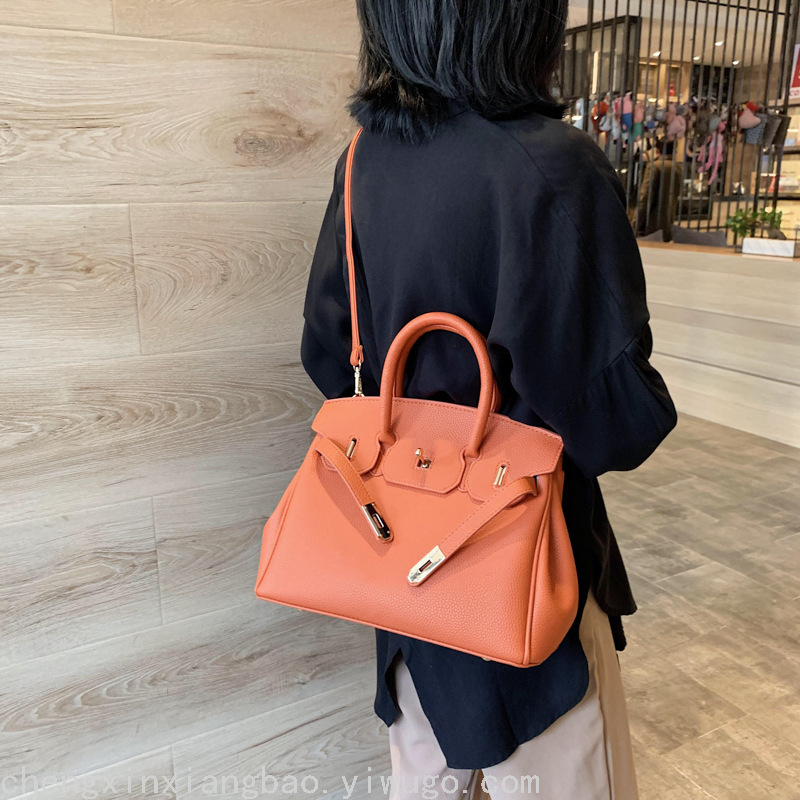 丝巾女包欧美铂金包荔枝纹单肩斜挎包锁扣女士手提包一件代发 English | 投诉