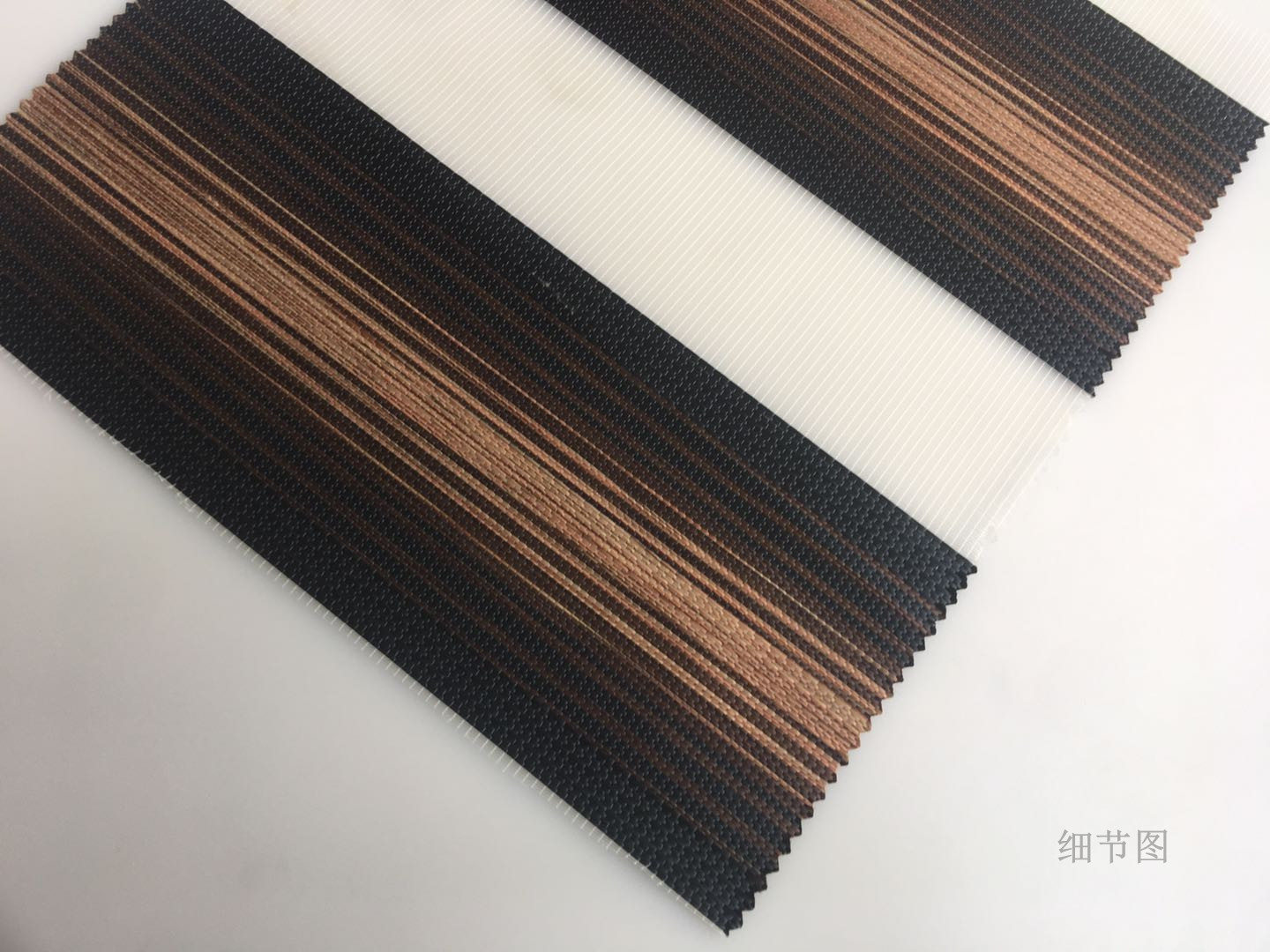 韩式柔纱帘又名斑马帘Zebrablinds,彩虹帘,双层卷帘等,成品窗帘采用双层面料循环,可调节光线,不占空间。它不仅集合了布和纱的优点为一身,而且集百叶窗帘,卷帘功能为一体。简约风格,双层面料,可错位调节局部光线,是您家居或是商务办公的可选装饰产品。当帘片拉开时,可望户外景色而透入室内的光线柔和舒适,当帘片拉密时,完全与户外隔绝。柔纱帘采用的是涤纶纤维面料,它是通过特殊编织法在同一块面料之间加入一层纱编织而成。通过调节帘布高低,可使透光条和遮光条产生交错,随意调节光线亮度。为室内提供和谐采光效果,同时使强烈的阳光变得柔和,舒服,视线条理好。