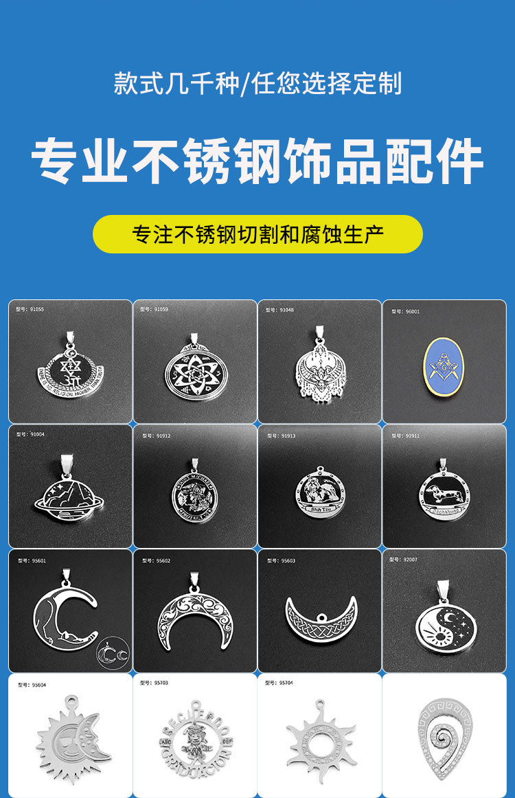 跨境热销新款椭圆钛钢吊牌不锈钢镂空激光切割腐蚀几何形项链吊坠 投诉