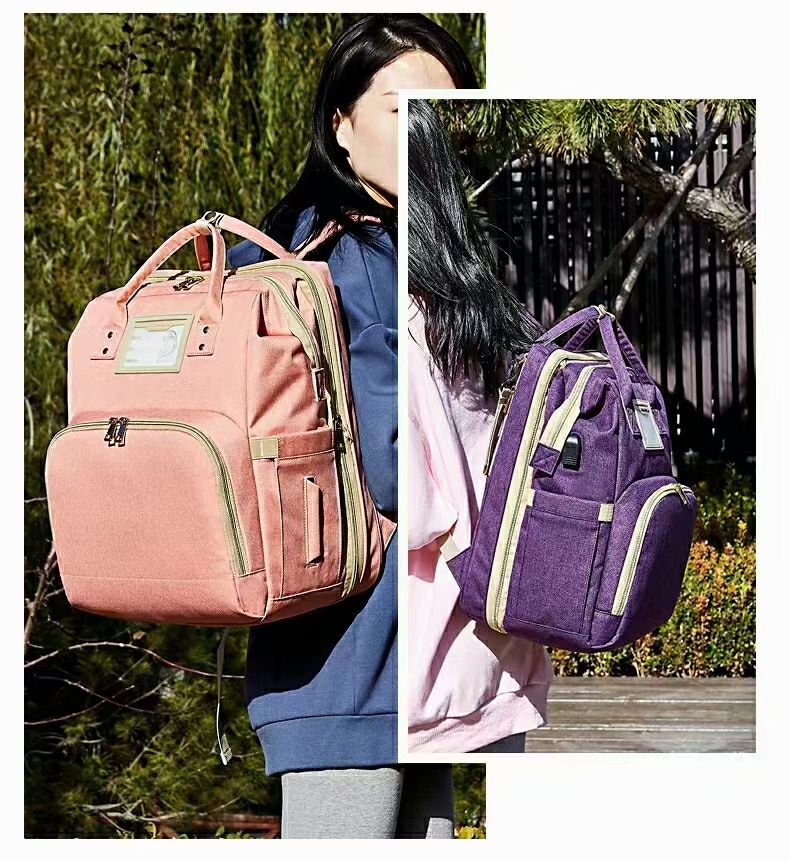 折叠床妈咪包2083大量发货中,手慢无,配置:面料防水、胶章+卡纸、双层干湿分离(前袋)、遮阳棚、USB、双挂钩、尿垫。需要的老板们抓紧下单了!