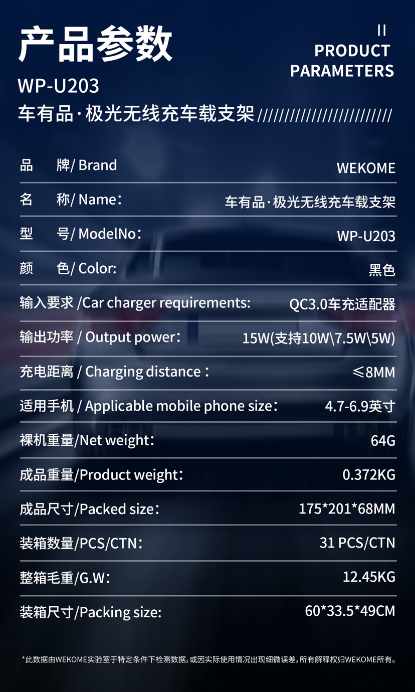 WEKOME维品特 车有品·极光无线充车载支架 WP-U203 投诉