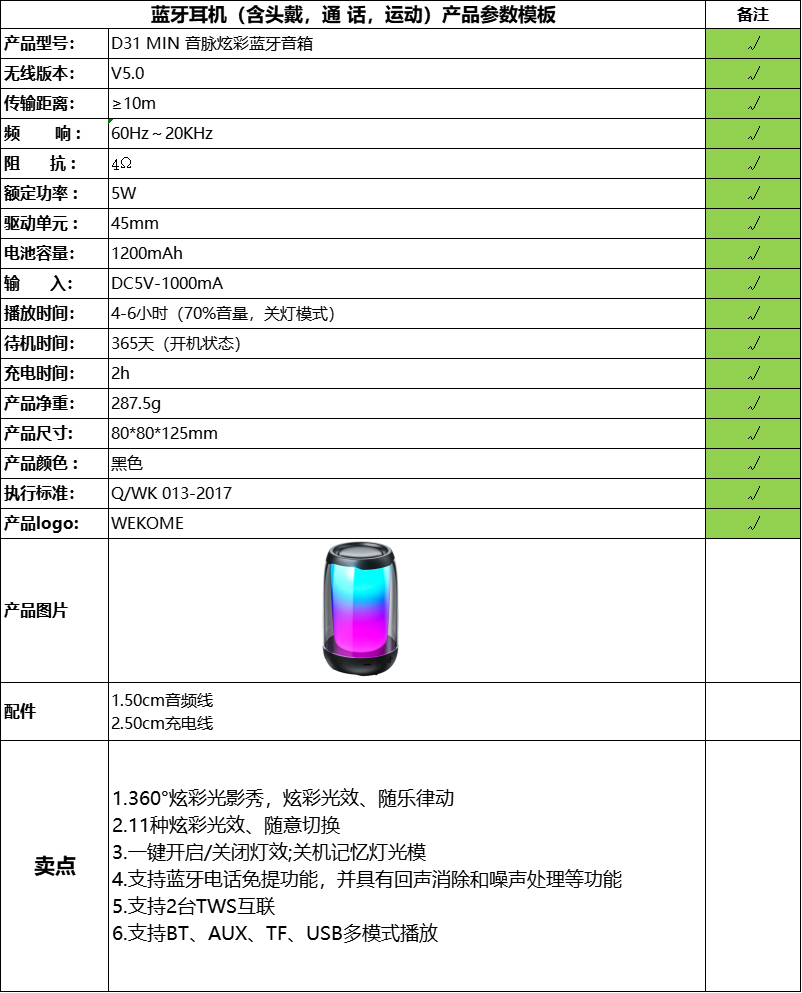 WEKOME维品特 音脉炫彩蓝牙音箱 D31MIN 投诉