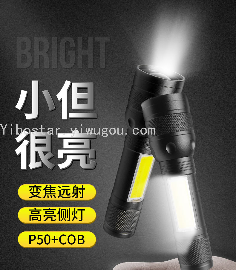 跨境强光手电筒P50充电宝手电USB输出电量显示铝合金大功率手电