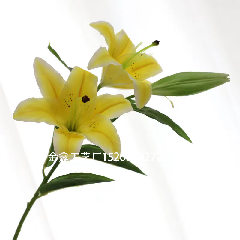 产品尺寸:2花1蕾 ,2片大叶,1片小叶。总高度41cm , 花宽25cm ,花高8cm ,果长9.5cm