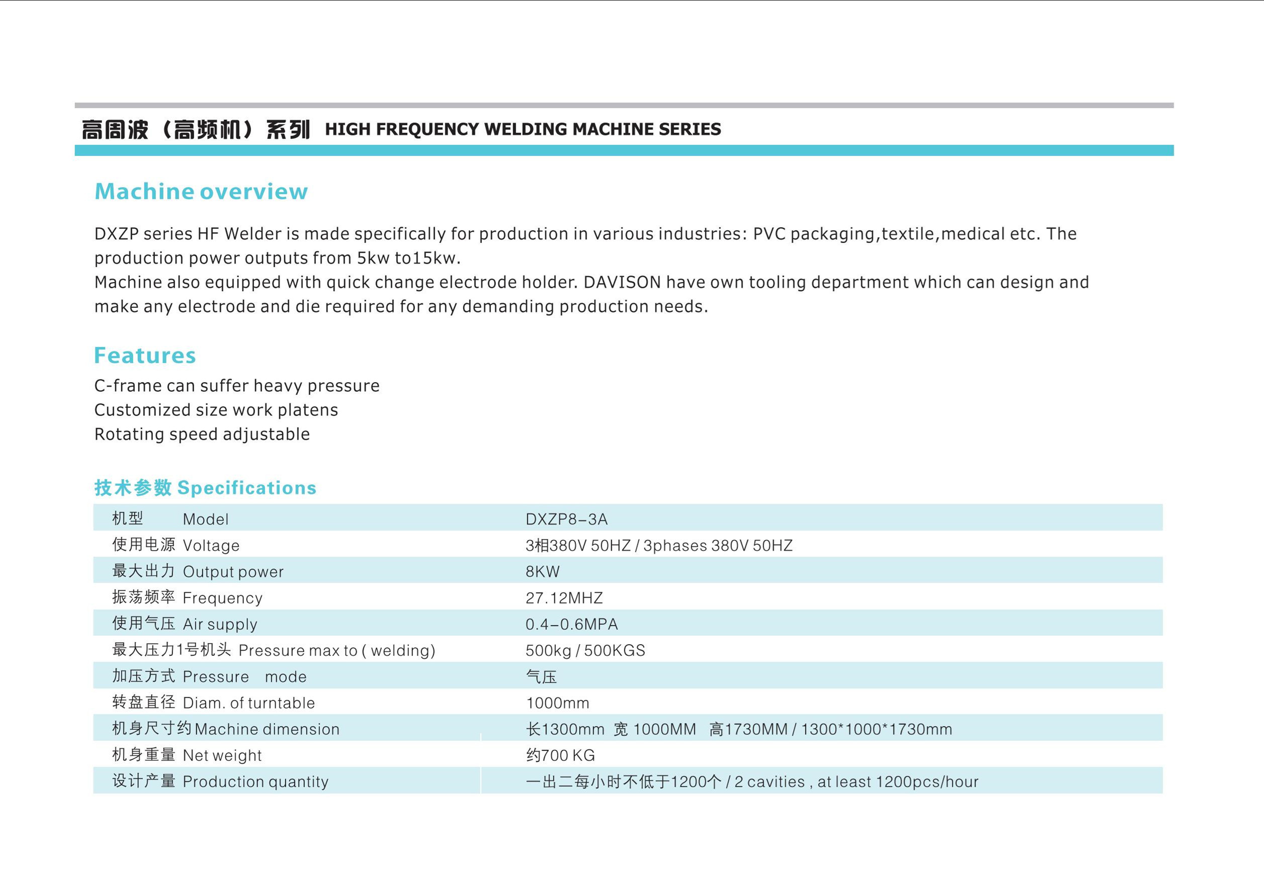 • 作为长三角地区最大高频机制造商之一,座落于宁波市国家高新技术开发区,占地八千余平方米,是一家集研发、生产、销售“东雄牌”高周波塑料熔接机(高频机)、超声波塑料焊接机及相关自动化之专业制造商。
