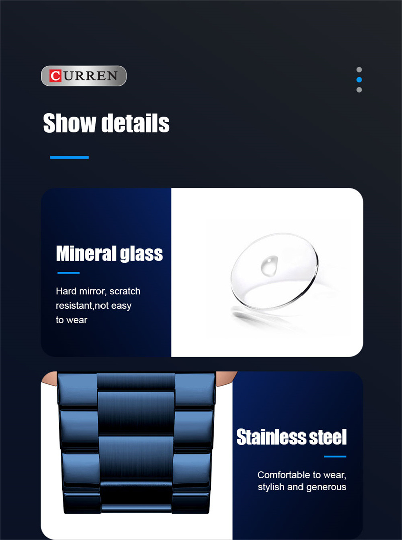 CURREN卡瑞恩8403新款钢带男士石英机芯日历个性户外商务休闲手表 投诉