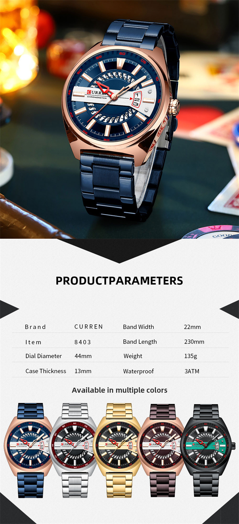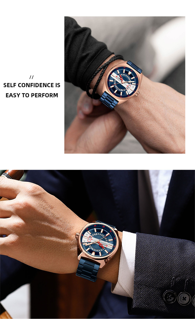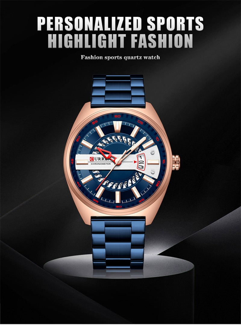 CURREN卡瑞恩8403新款钢带男士石英机芯日历个性户外商务休闲手表