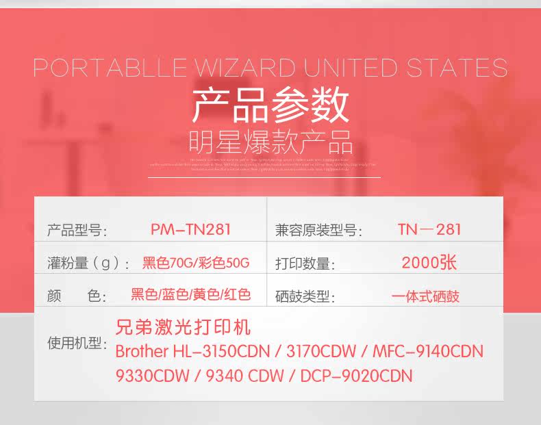 雄图281BK粉盒适用兄弟/BrotherHL-3150CDN 3170CDW MFC-9140CND 投诉
