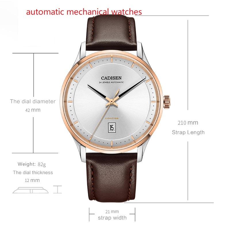 卡迪森CADISEN8143新款男士日历简约蓝宝石玻璃全自动机械手表
