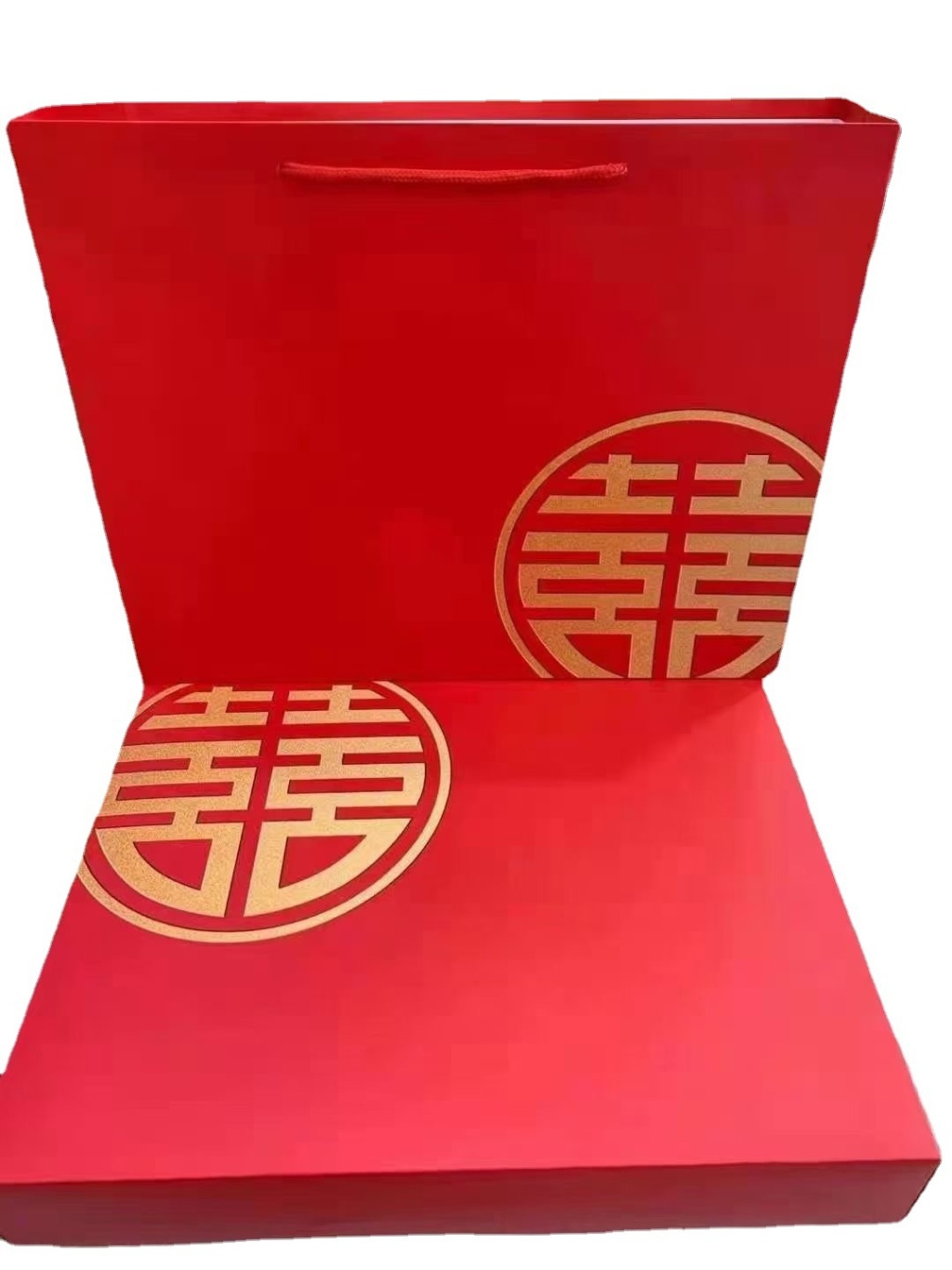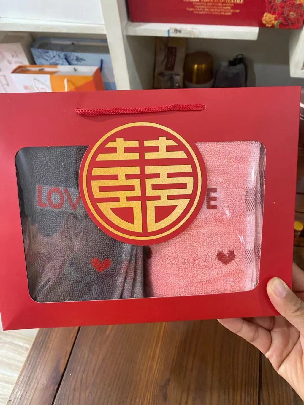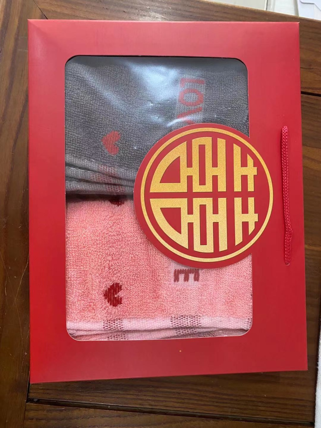 红色结婚双喜红双条毛巾礼盒双条毛巾礼盒装婚庆毛巾礼品盒