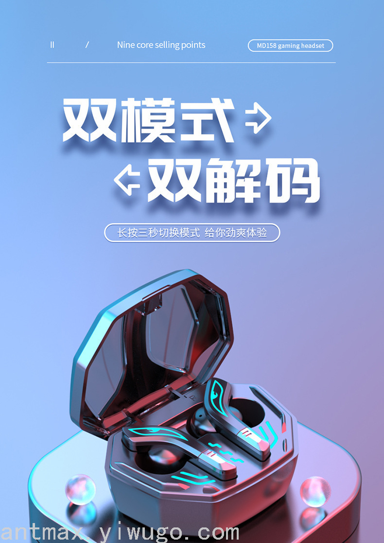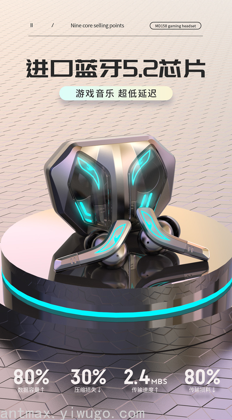 战狼双模电竟游戏音乐蓝牙耳机炫彩灯5.2智能9D苹果安卓手机通用
