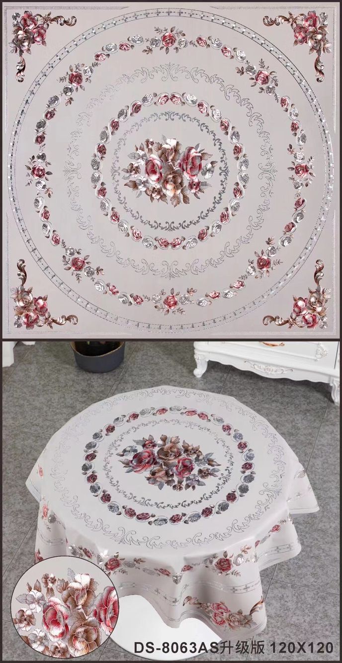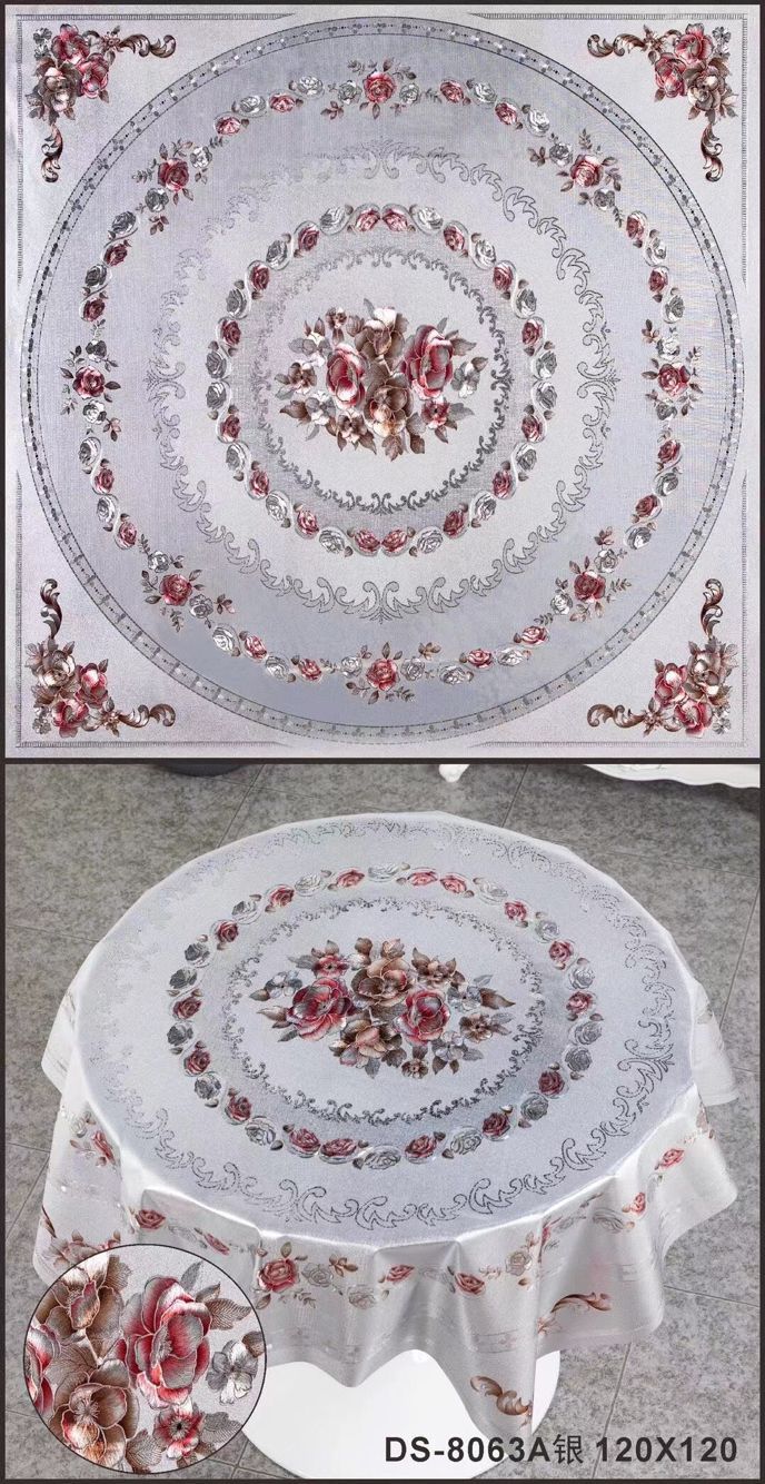 对花精钻桌布120圆,150圆PVC桌布防水防油免洗桌垫茶几垫