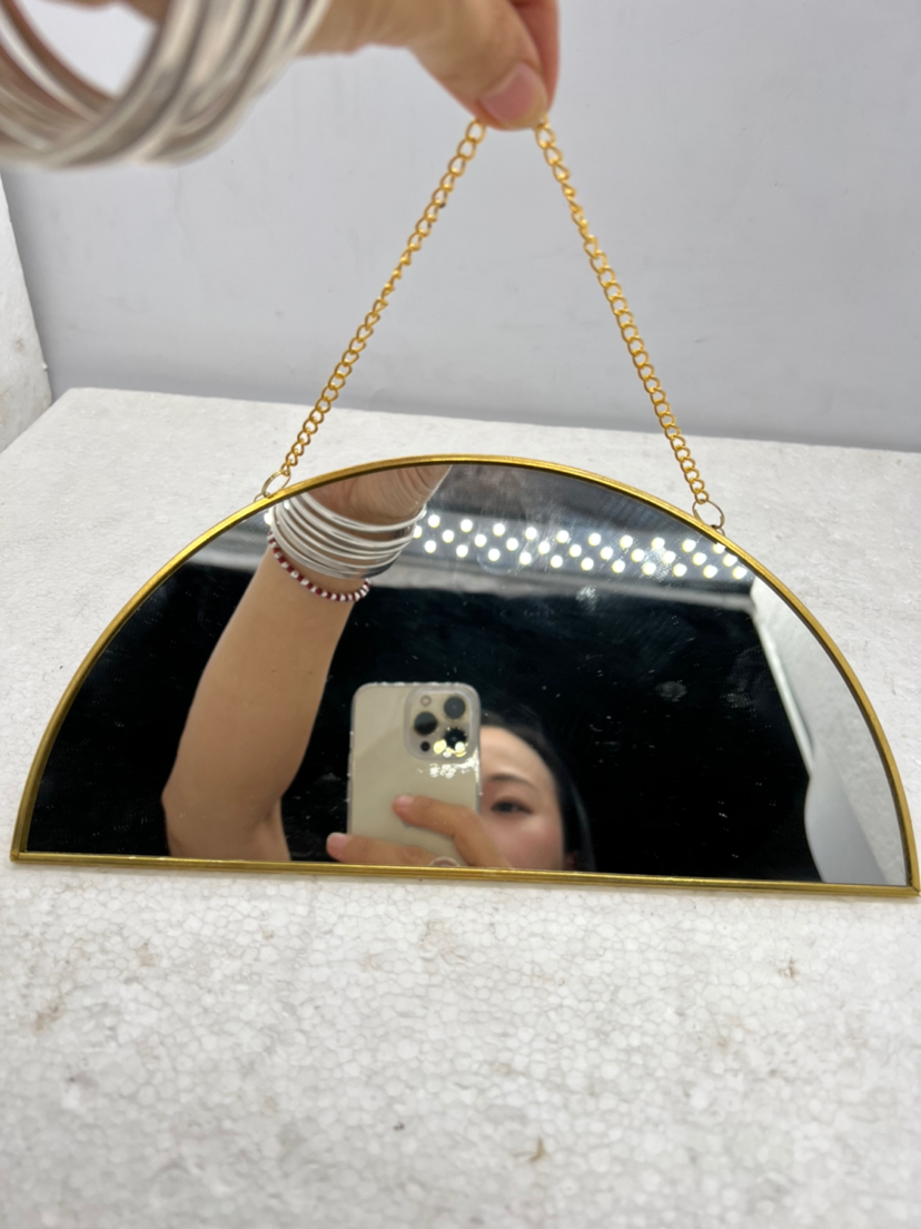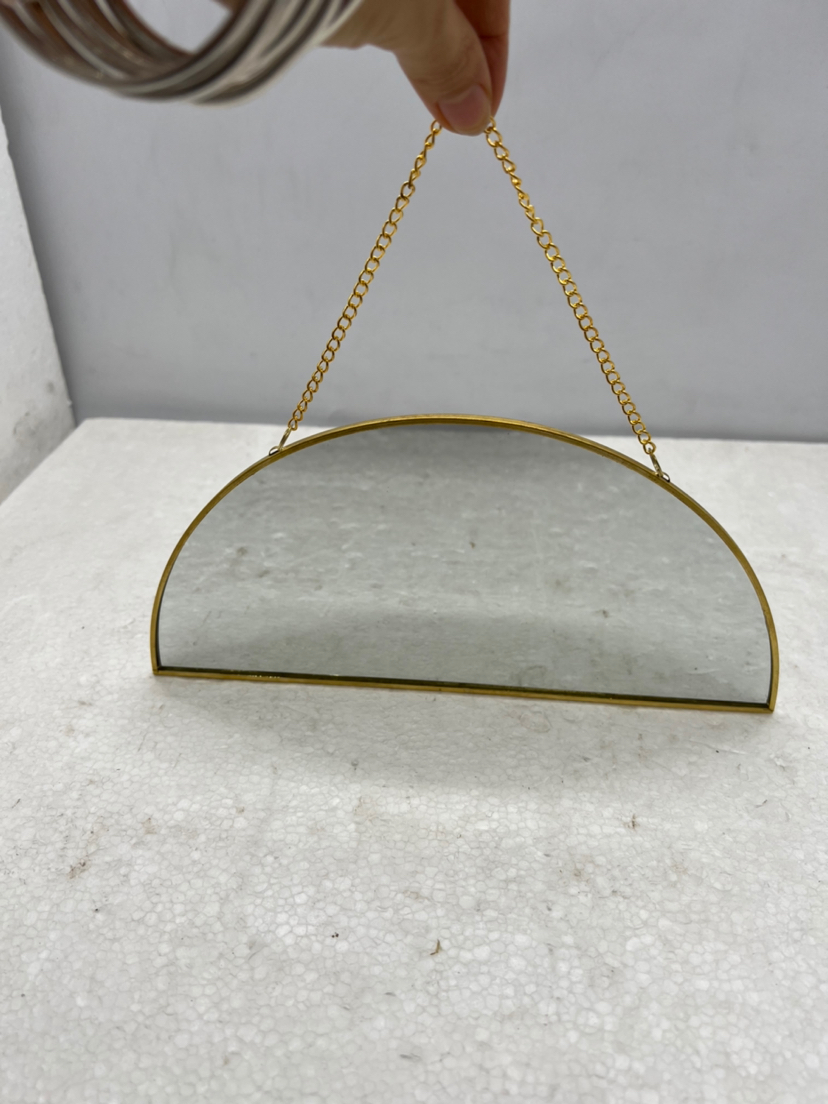 北欧风几何极简黄铜六边形镜子圆形墙壁玄关酒吧挂梳化妆卫浴镜子
