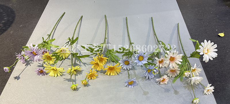 产品尺寸:总长约50cm,4花+1苞+3片叶子,花头直径有6cm,8cm,花苞直径2cm,枝干长约25cm;
