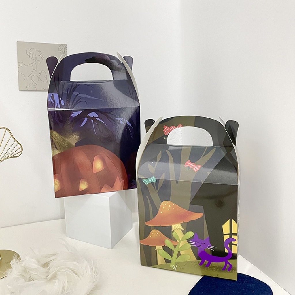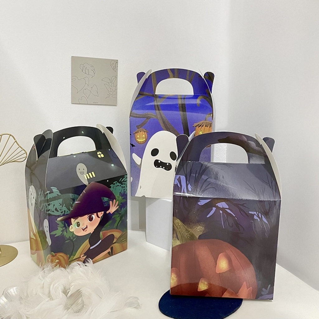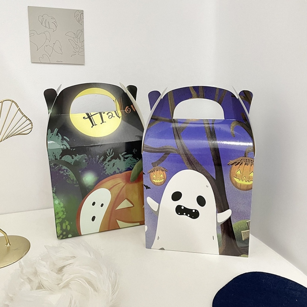 万圣节礼品包装盒白卡纸盒子糖果印花幽灵南瓜女巫礼品包装盒
