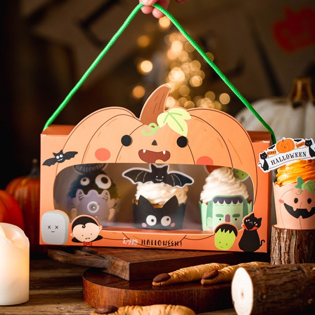 万圣节纸杯蛋糕盒万圣节马芬杯包装打包礼品饼干盒西点儿童烘焙