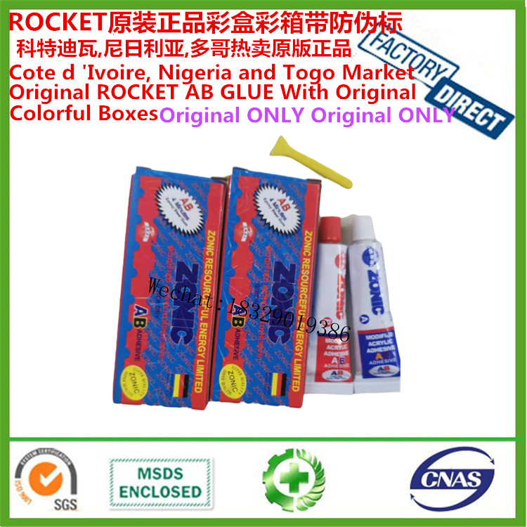 本厂专业供应尼日利亚市场胶水,ROCKET 正品爆款尼日利亚市场AB胶,可定牌,可定制客人LOGO,请选购正品款购买,谨防上当受骗。需要了解更多尼日利亚市场产品,请加客服微信哦。我们是源头工厂哟!