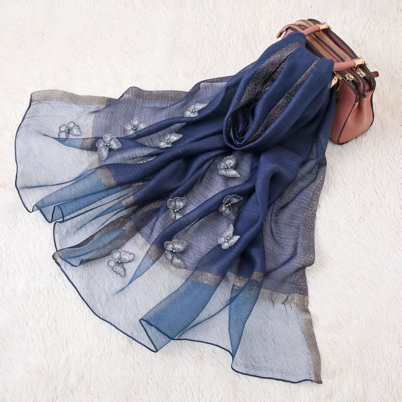 杭州围巾女薄款披肩蝴蝶钉珠丝巾春秋个性时尚百搭纱巾 English | 投诉