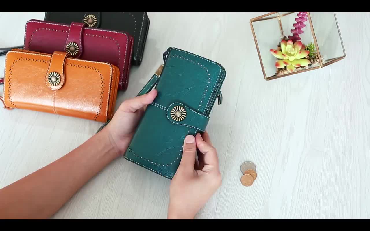 RFID防磁钱包女韩版女士钱包牛皮钱夹皮夹大容量手拿包卡包女代发 English | 投诉