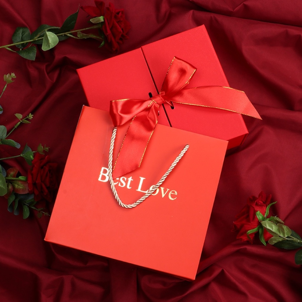 新年红色双开礼盒保温杯围巾暖手宝礼物盒过年喜庆结婚喜糖盒