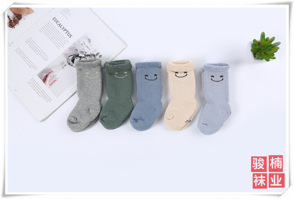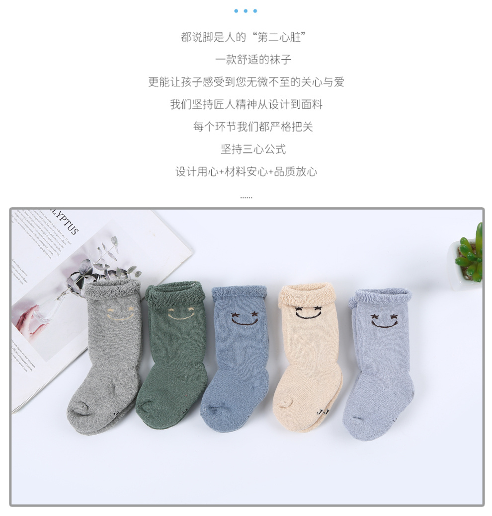 产品名称:寒冷冬日婴幼儿儿童保暖羊毛袜长筒家居袜韩版可爱笑脸刺绣地板袜