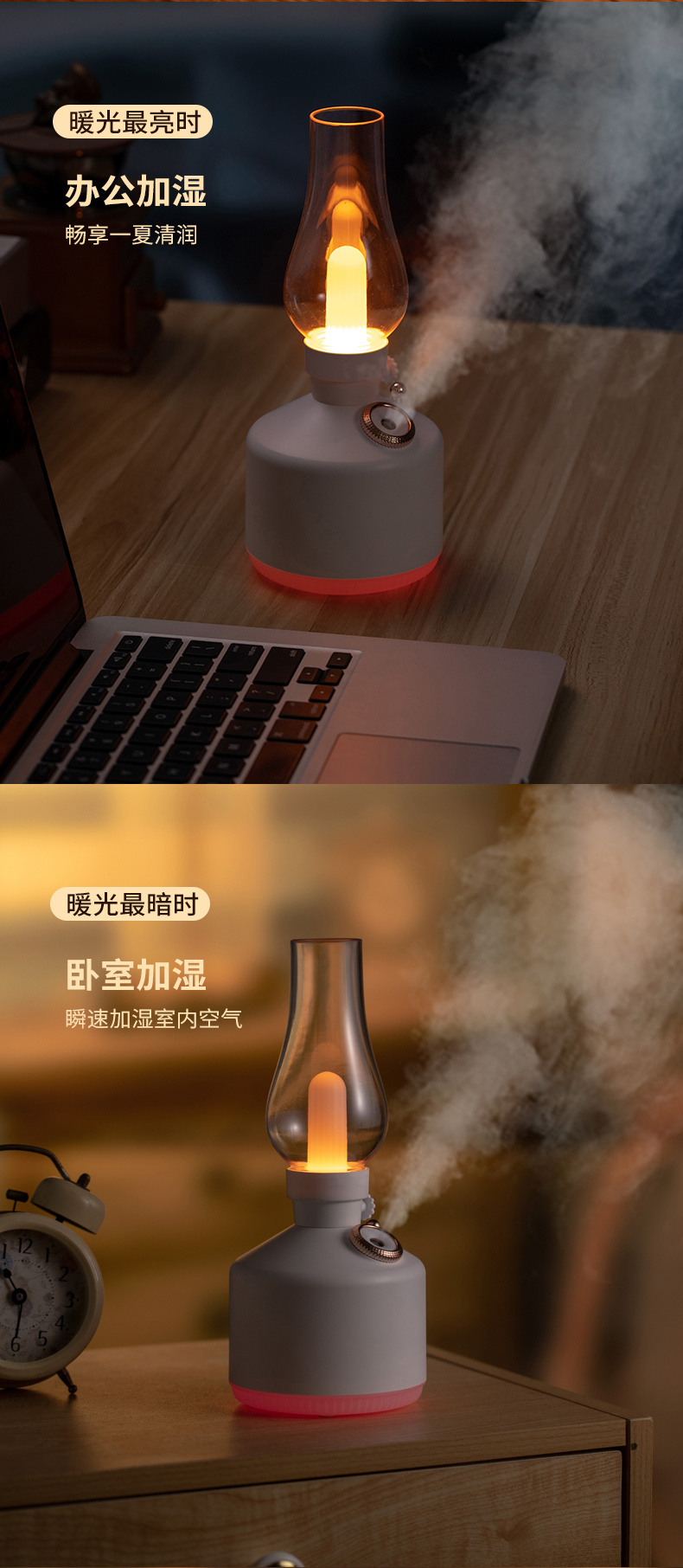 加湿器:在水箱内加满水(不超过水位线),等待3-5分钟再开启雾气开关即可(加湿器内有棉棒,吸足岁需要3-5分钟)。加湿器不可添加精油,可少量加入能溶于水的香水或酒精(但是也不建议添加),棉棒无需定期更换,看个人使用情况觉得发黄变色比较脏了才需要更换。