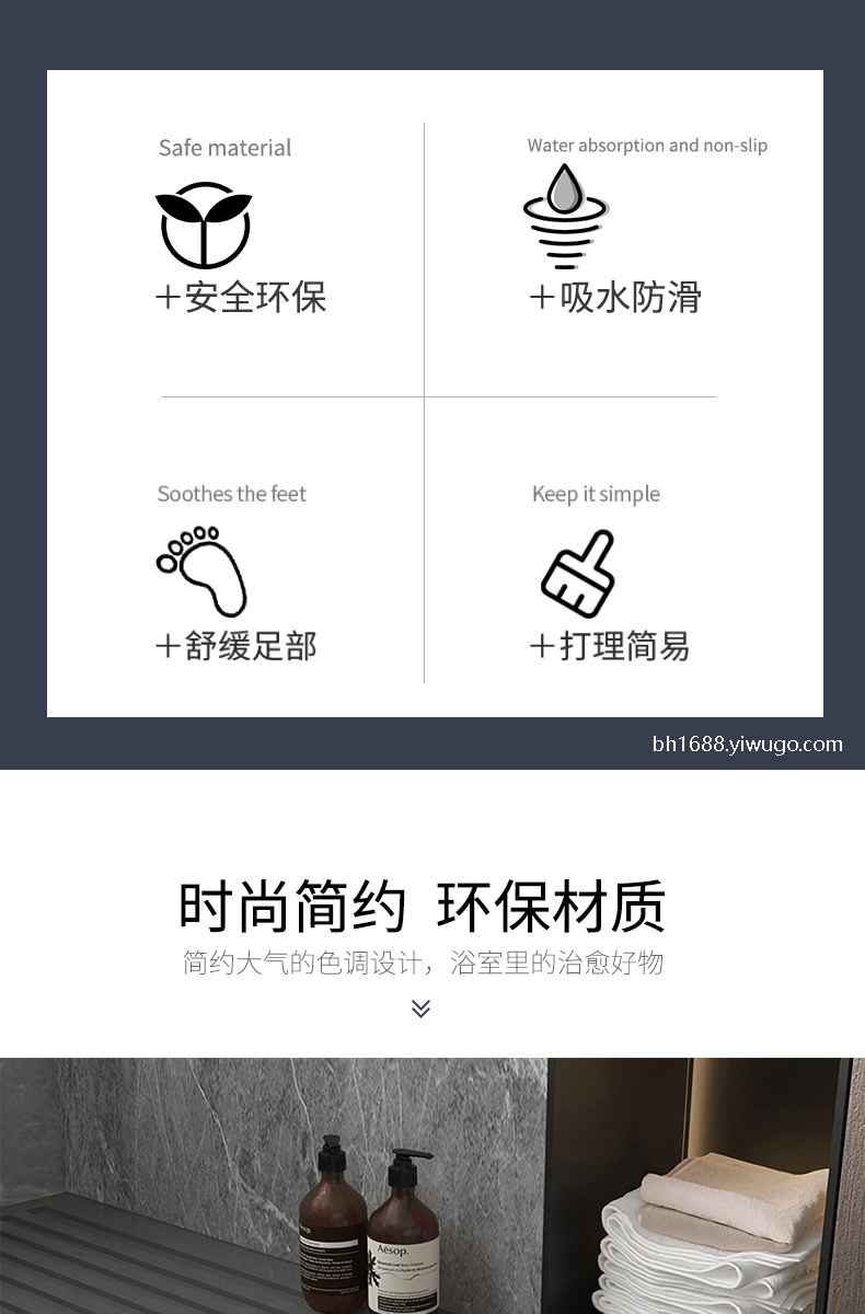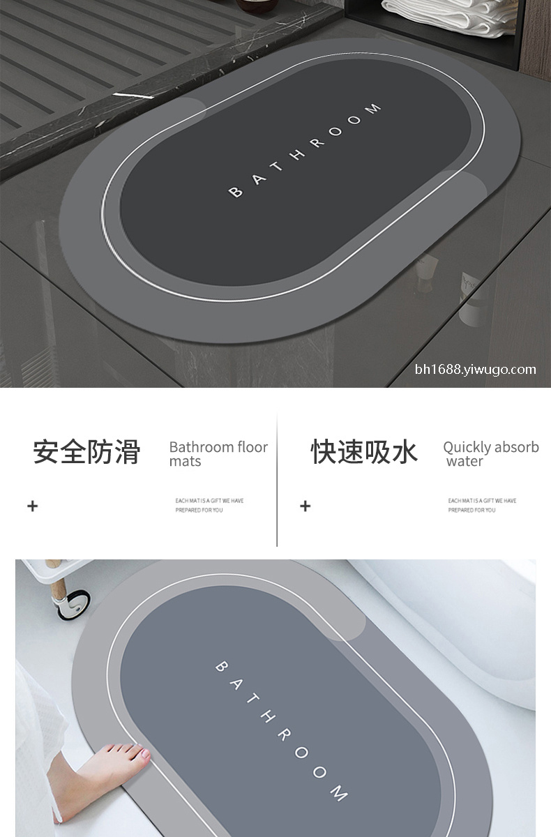 软硅藻泥地垫吸水地垫浴室垫卫生间门口防滑脚垫厕所地毯门垫 English | 投诉