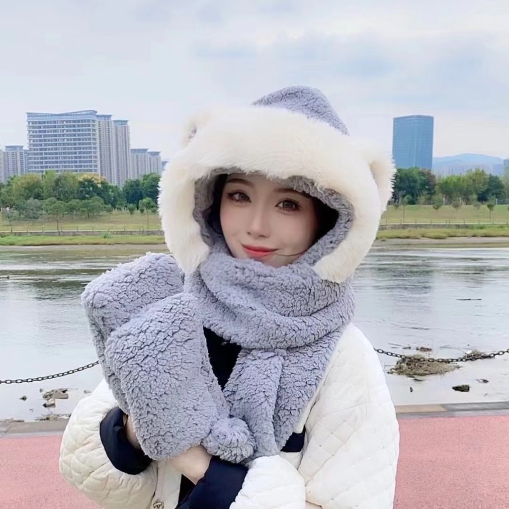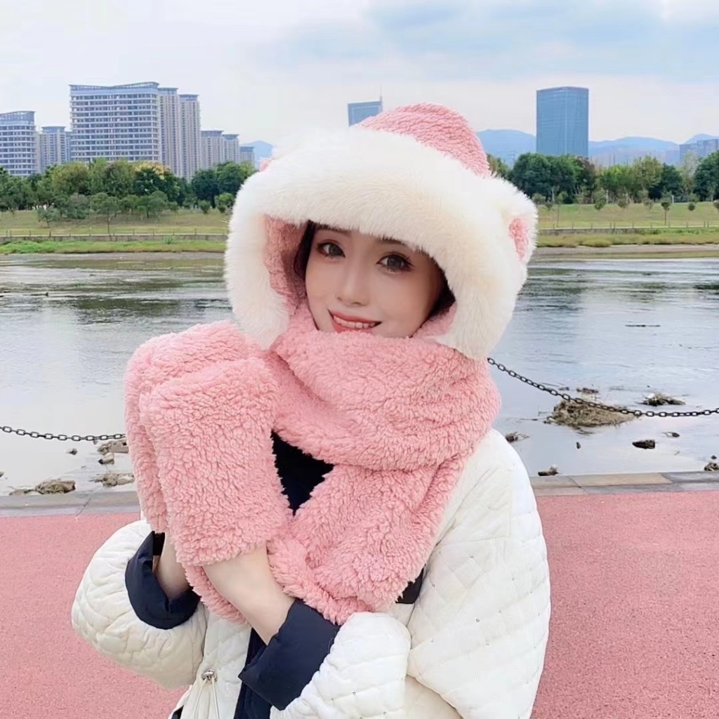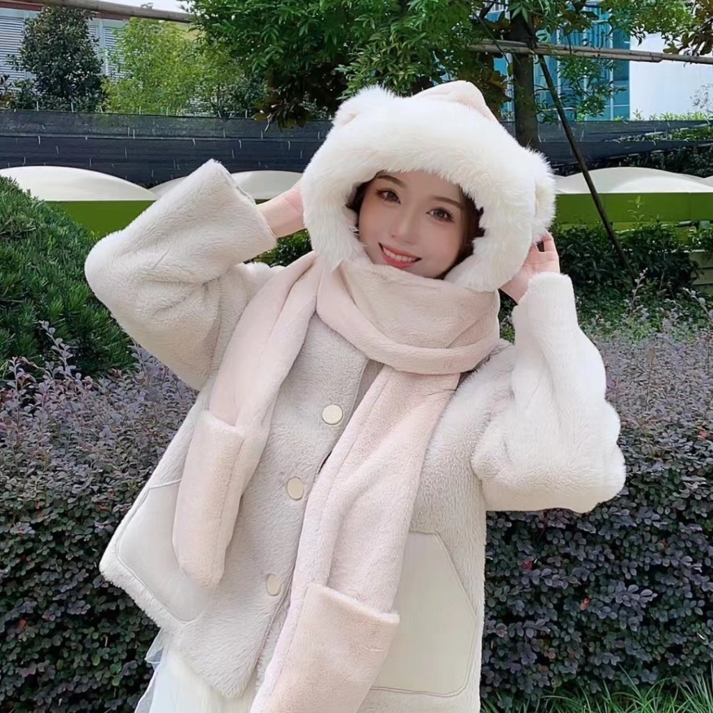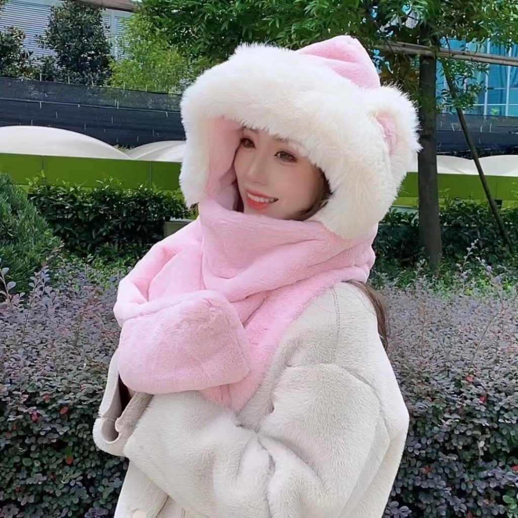 小兔毛棉花三件套动物帽保暖时尚美观大方舒适