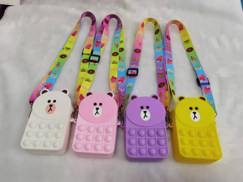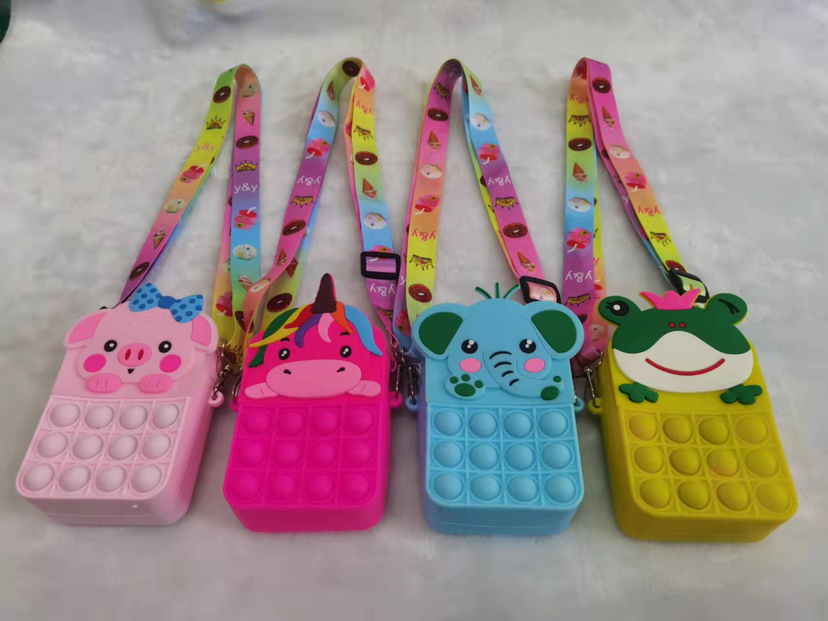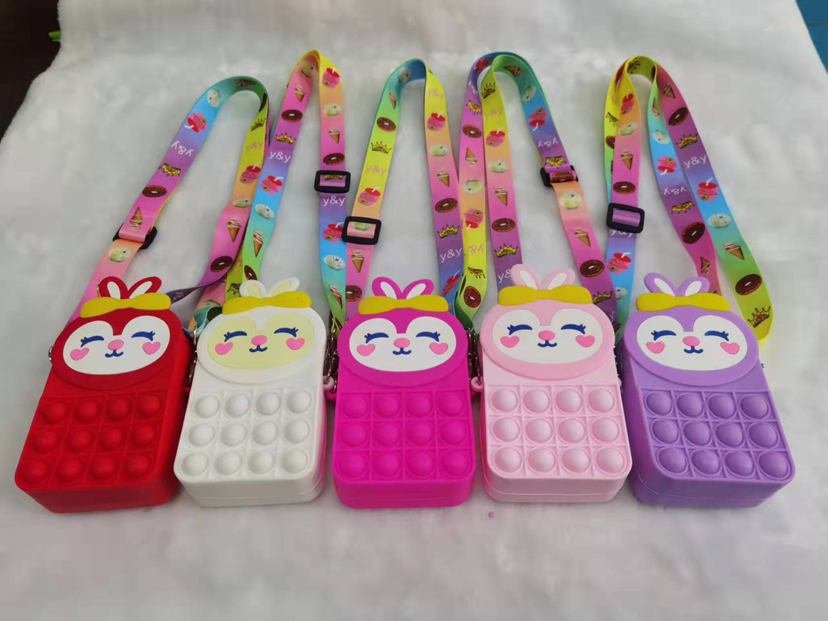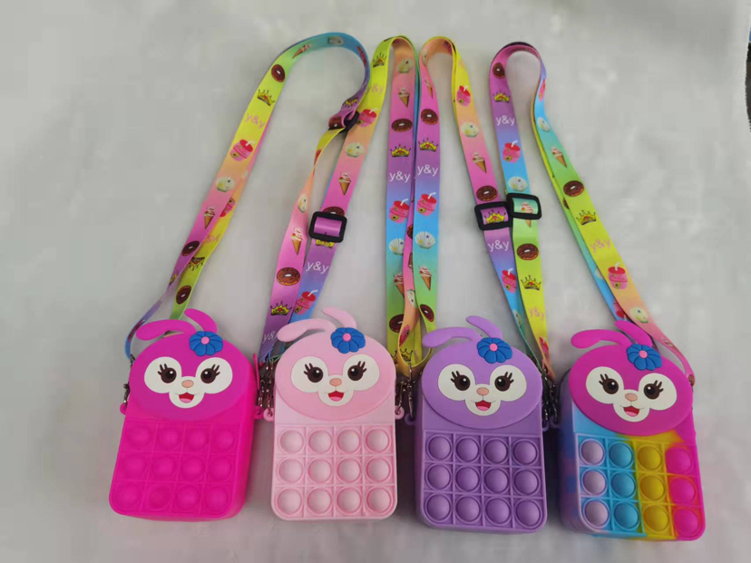 2021爆款兔子猫咪熊硅胶卡通可爱按压泡泡乐硅胶斜挎包