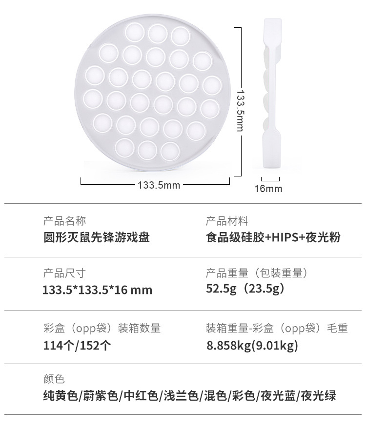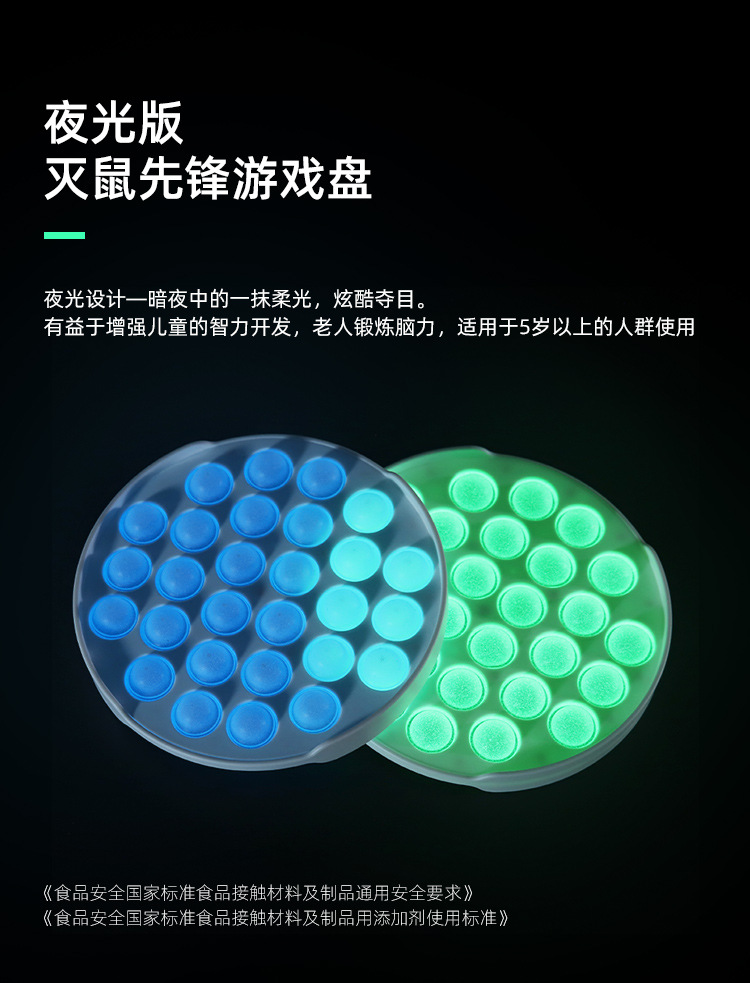 亚马逊夜光灭鼠先锋专利产品硅胶减压儿童玩具圆形荧光灭鼠先锋
