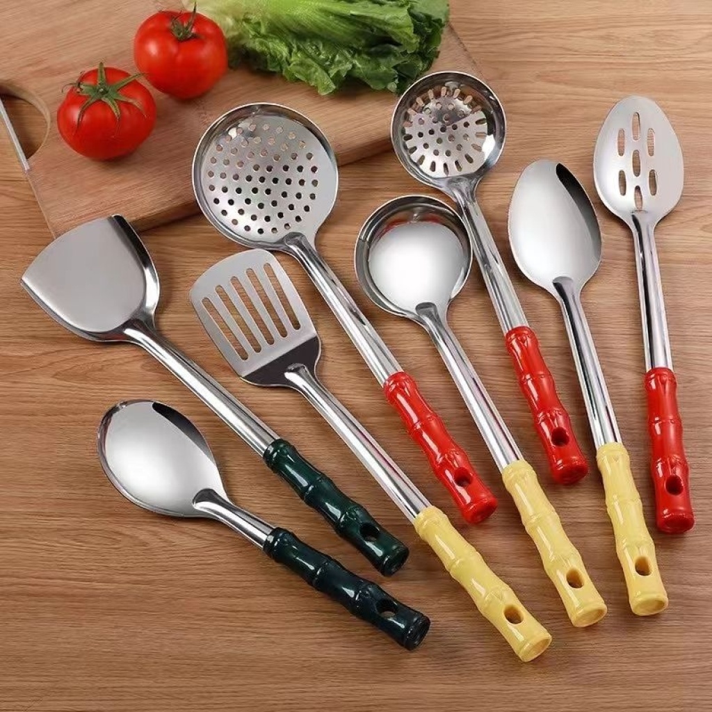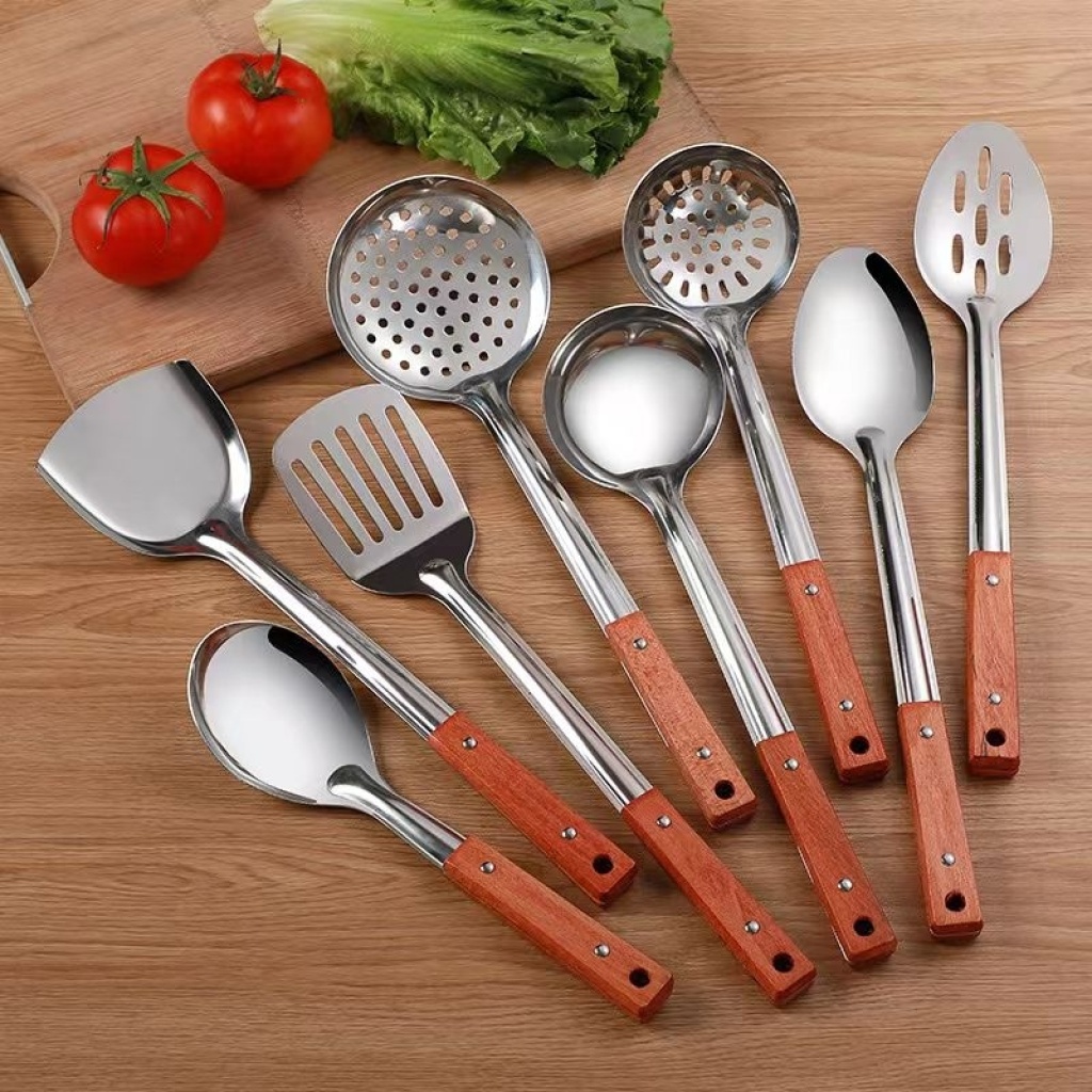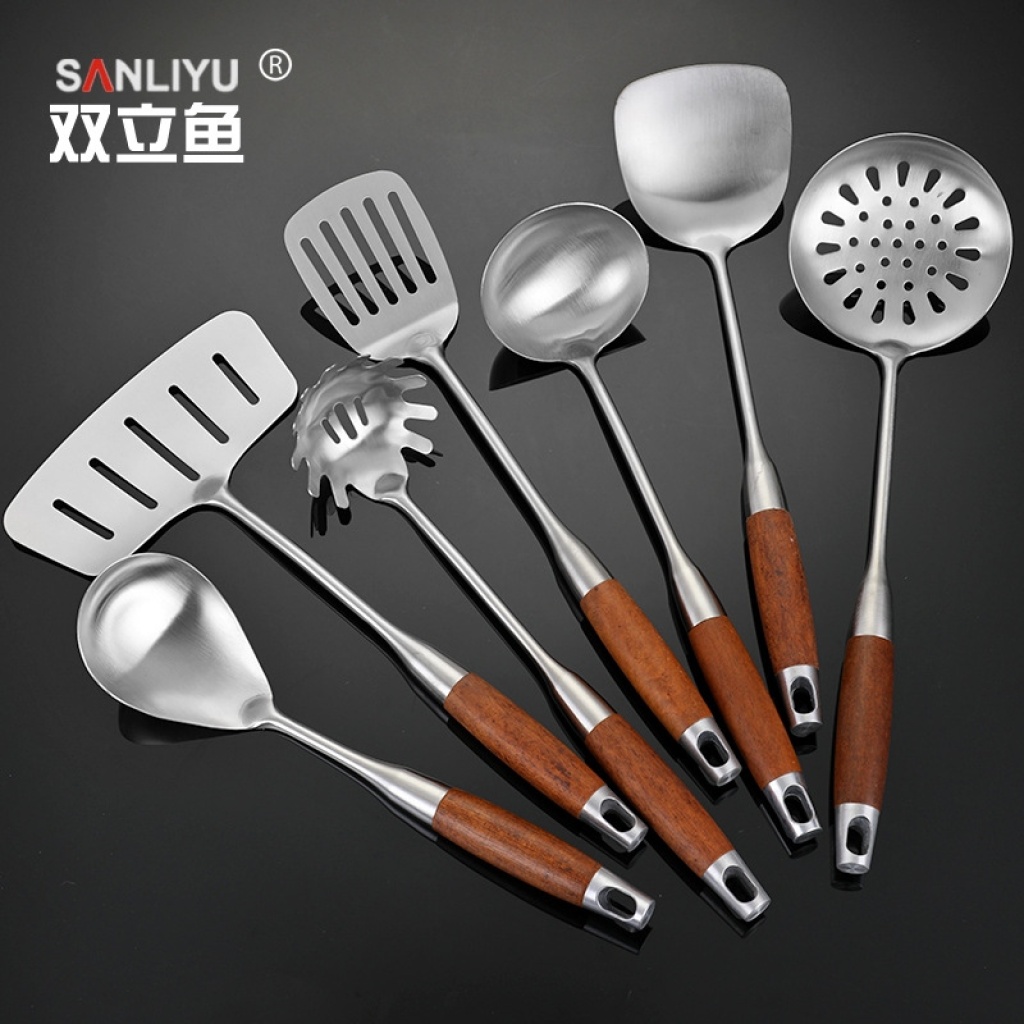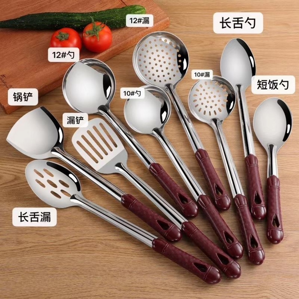 不锈钢夹柄铲勺木柄塑料柄铲勺