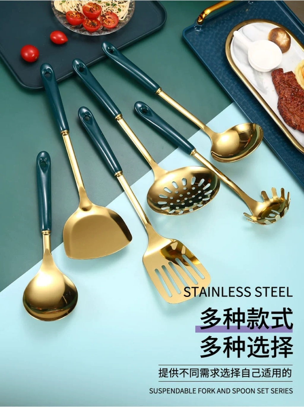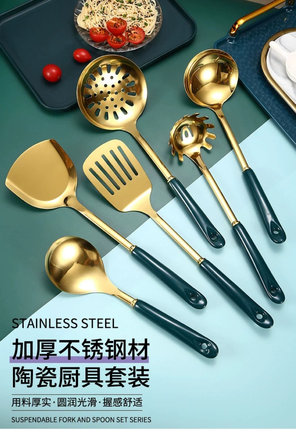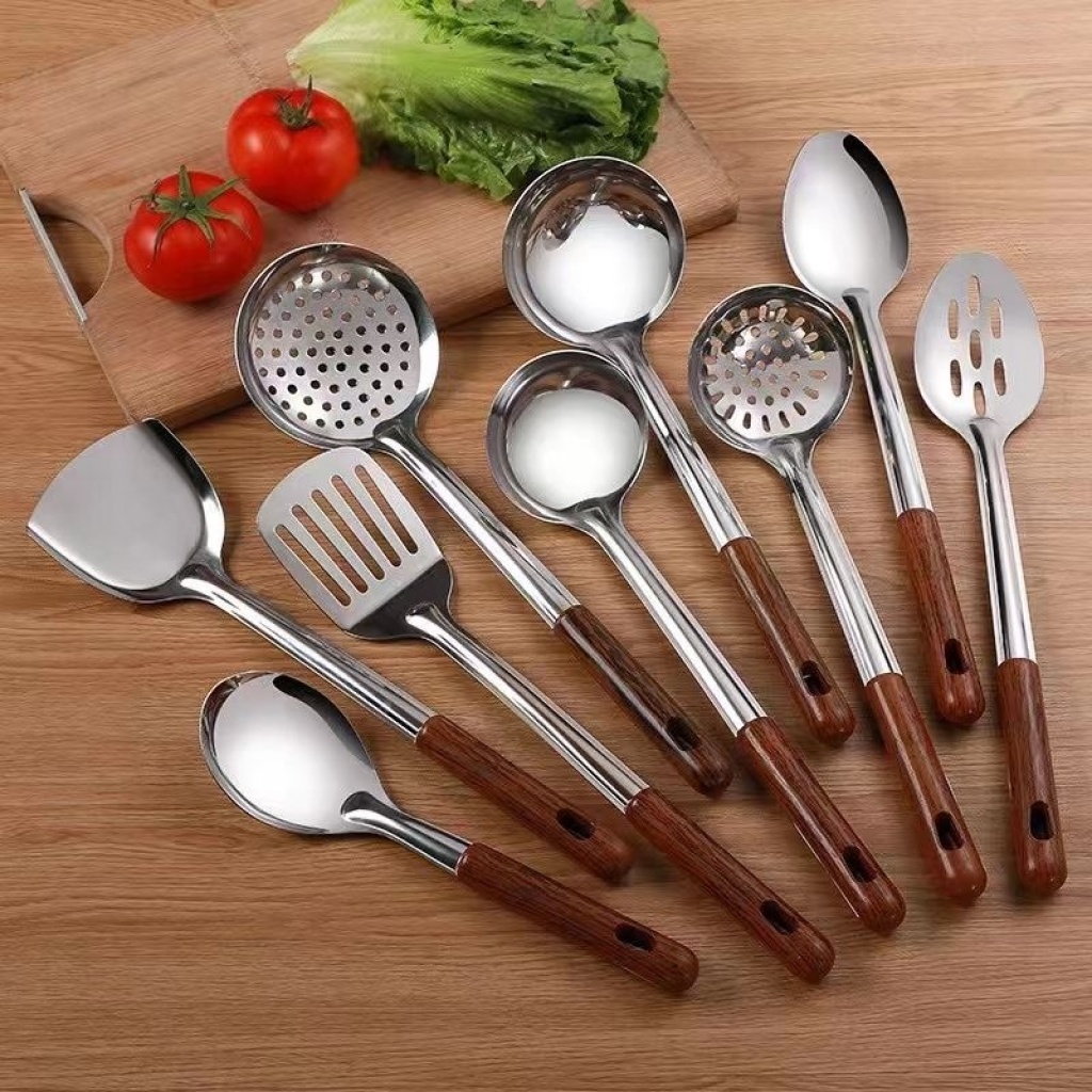 不锈钢夹柄铲勺木柄塑料柄铲勺