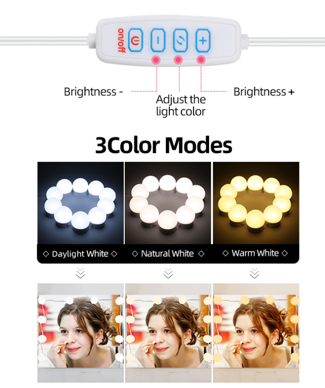 爆款LED镜前灯USB化妆镜补光灯可旋转收线好莱坞灯泡串