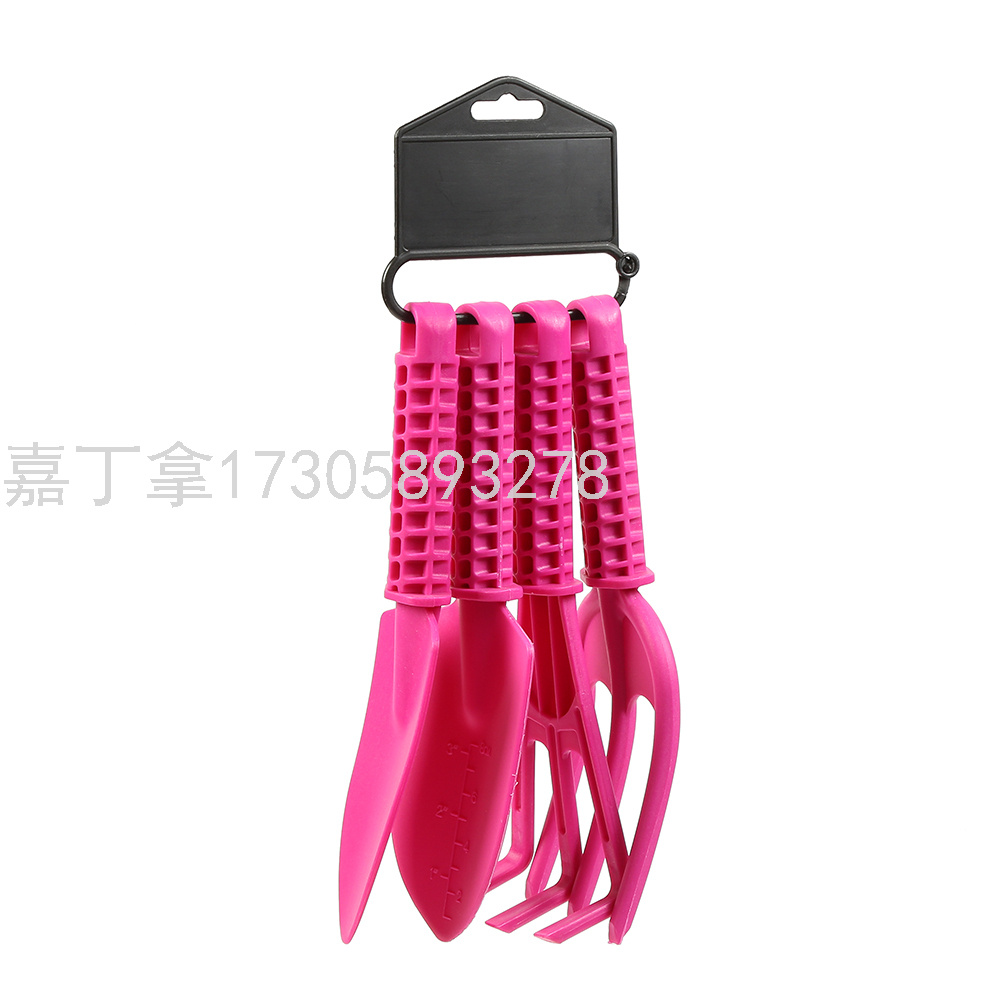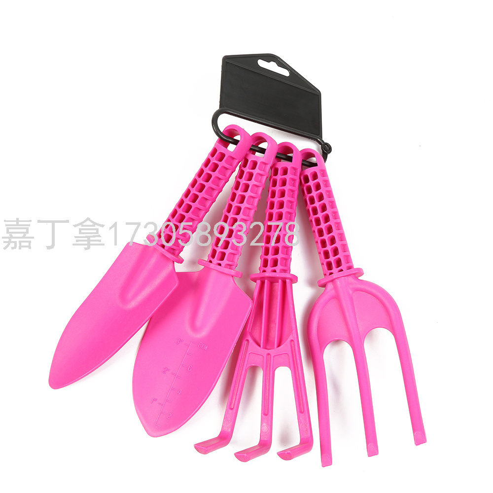 4PCS玫红色园林铲带吊卡 园艺种植园林铲/耙 家用绿化手动工具