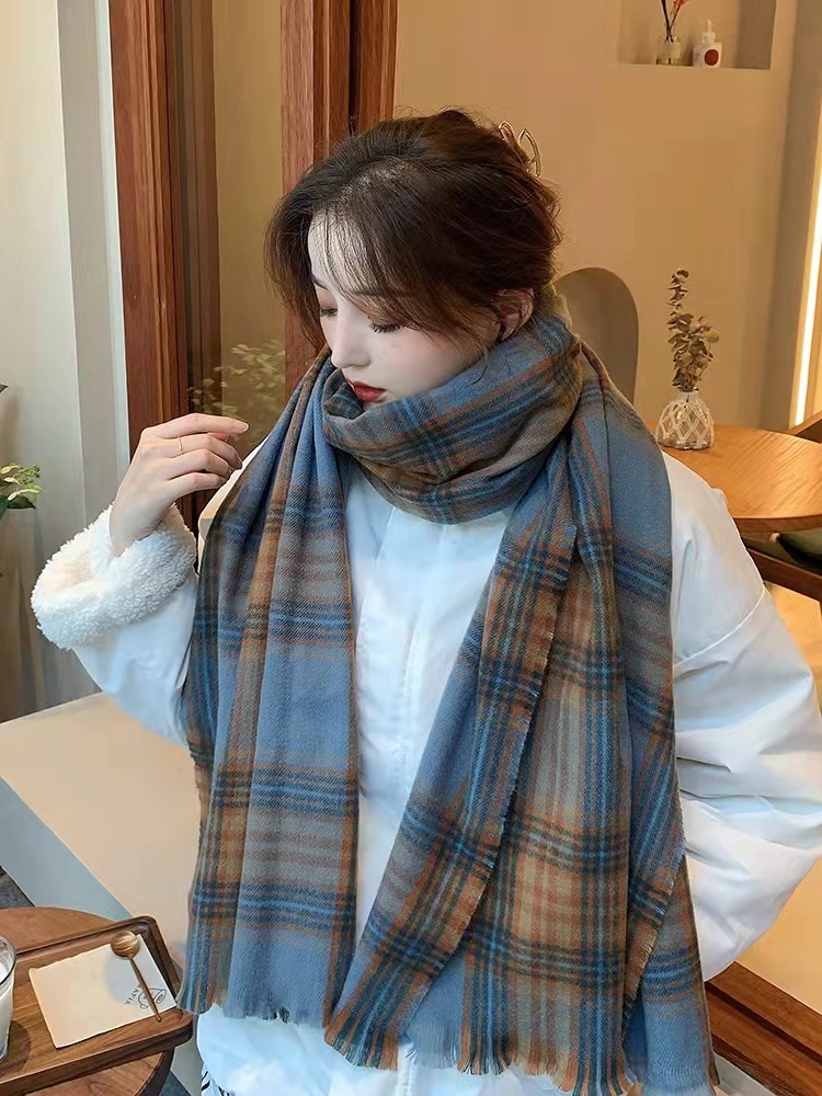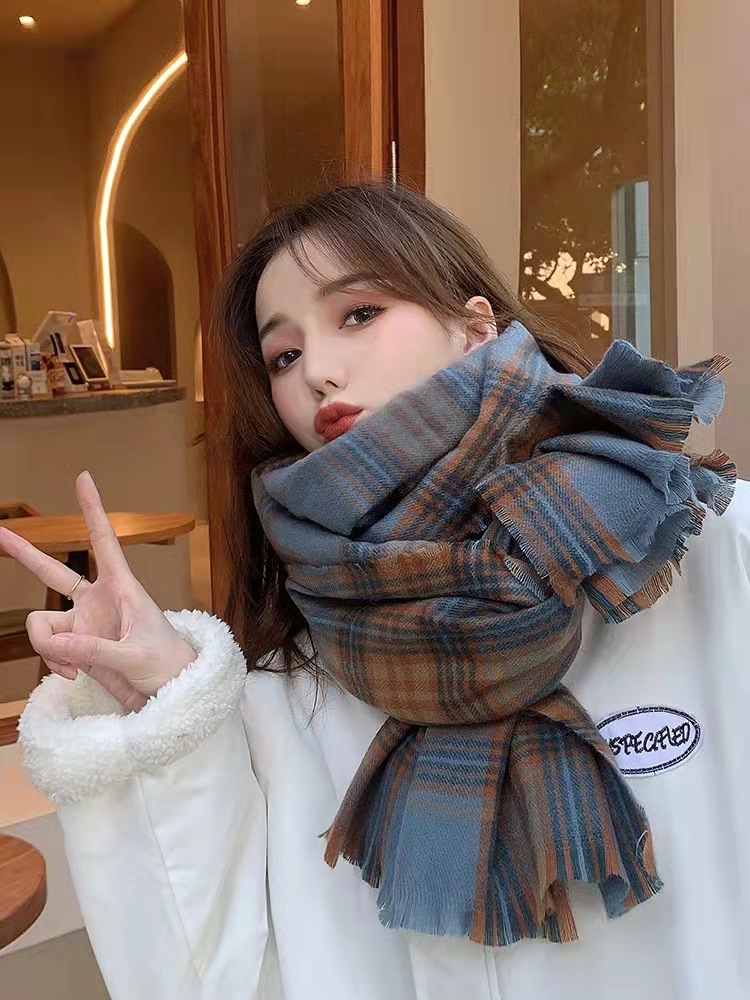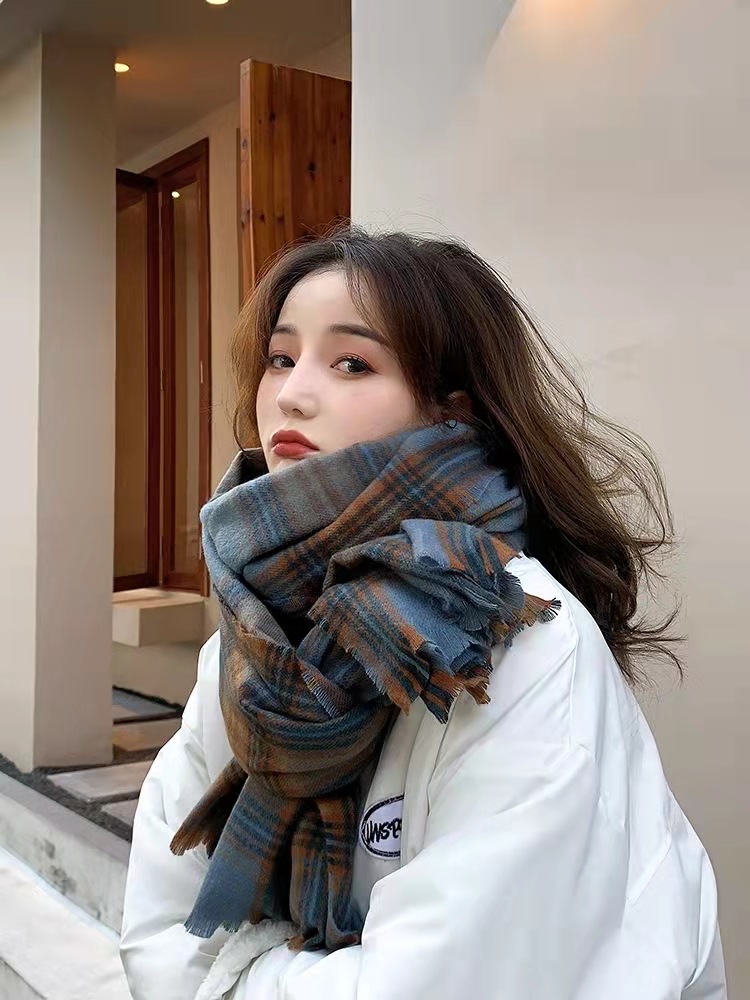 超柔然白百何同款围巾女冬季仿羊绒格子围巾加厚长款日系韩版披肩 English | 投诉