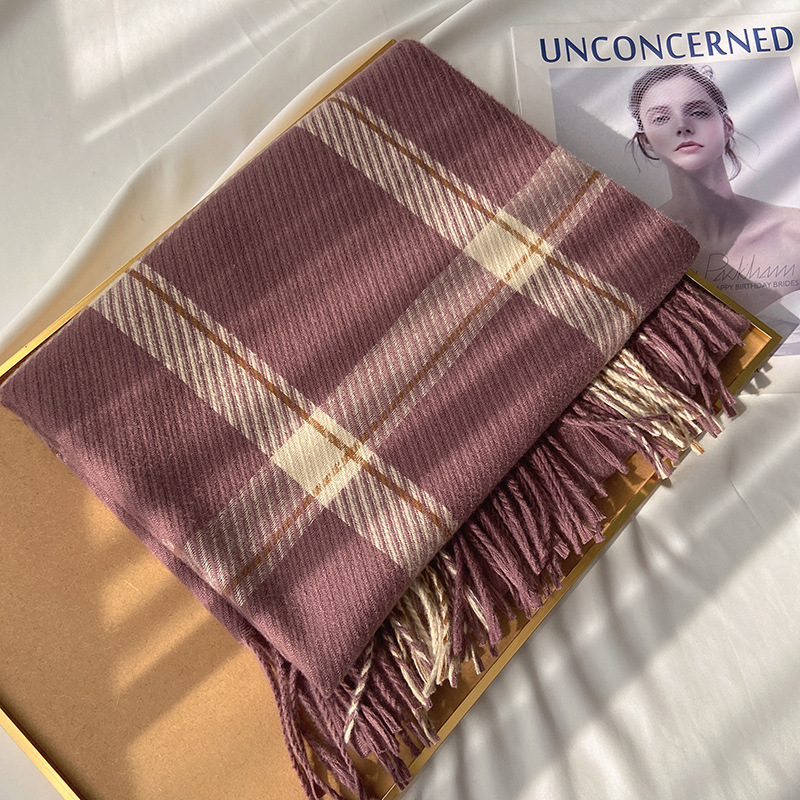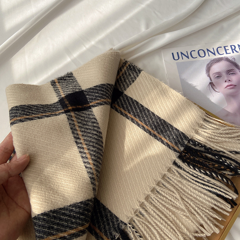 格子围巾女秋冬季韩国东大门仿羊绒流苏披肩情侣保暖围脖 English | 投诉