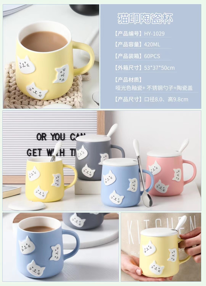 创意立体猫咪头陶瓷杯带盖带勺马克杯卡通水杯 投诉