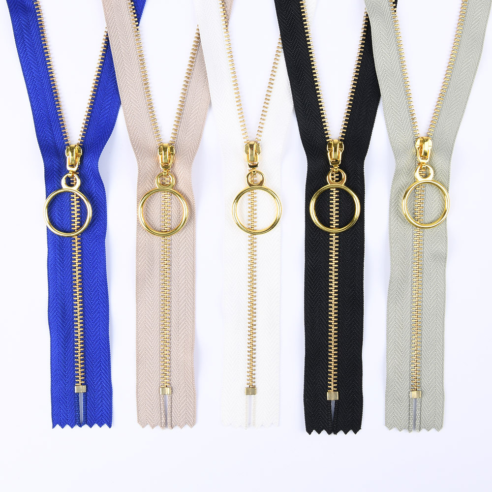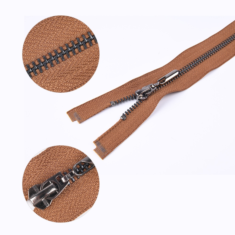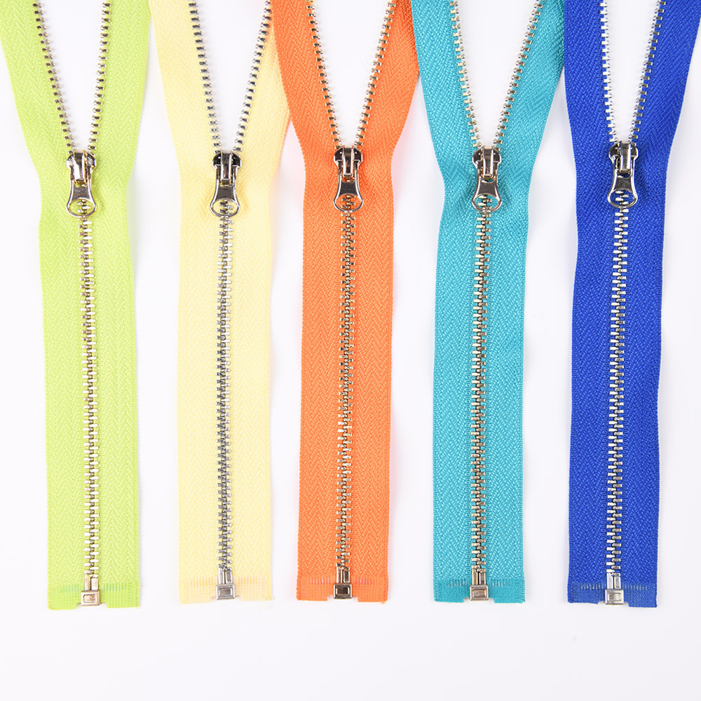 金属拉链牙齿有普通牙,和Y牙,颜色有黄铜,青铜,黑镍,镀白铜,古银,白金,黄金,浅金,玫瑰金。